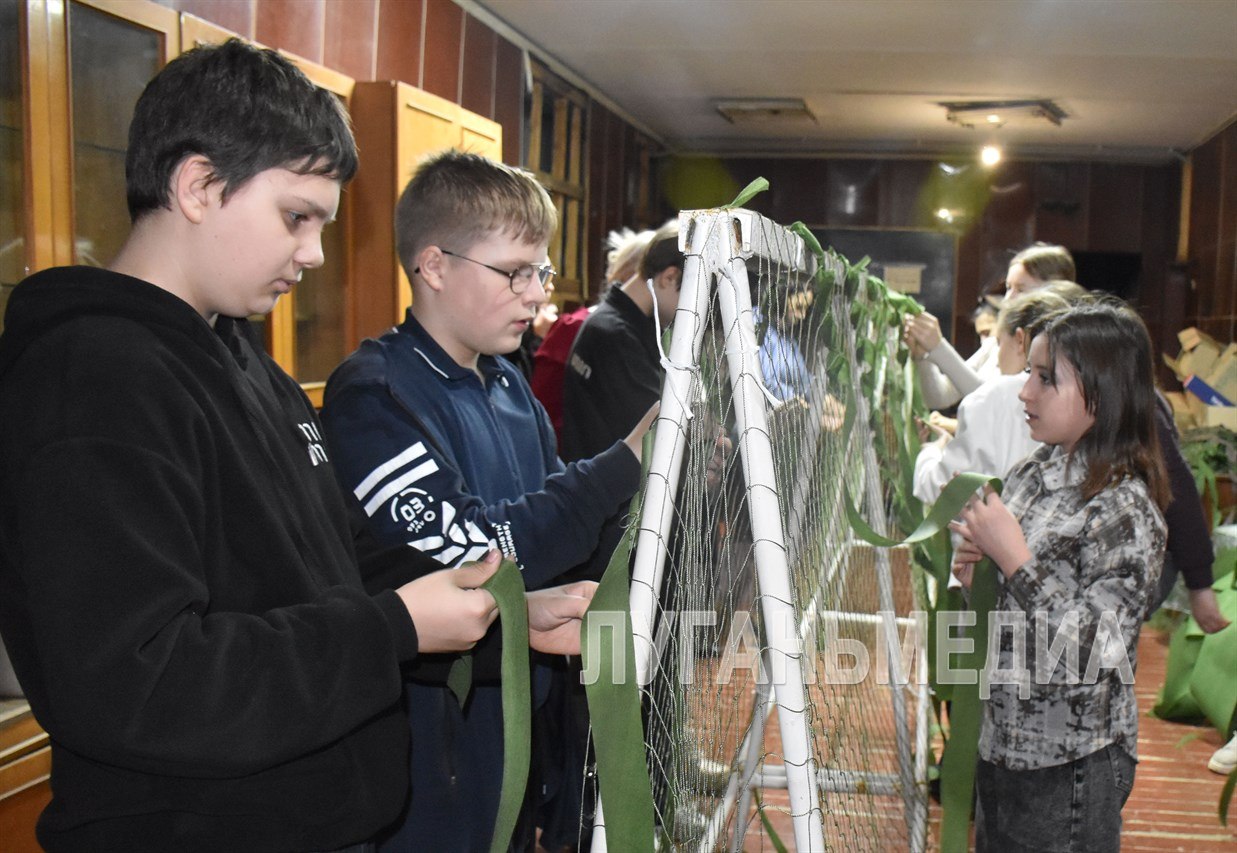 Мастер-класс по плетению маскировочных сетей провели для школьников волонтеры Брянки