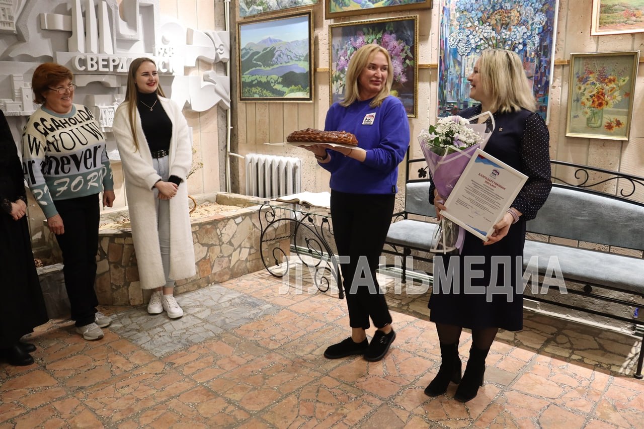 Свердловске активисты партии «Единая Россия», депутат Совета Свердловского муниципального округа ЛНР, муниципальный координатор партийного проекта «Женское движение «Единой России» Светлана Кришталь и исполнительный секретарь Свердловского местного отделения «ЕР» Татьяна Лупанова поздравили сотрудников Свердловского краеведческого музея с Днем культуры. Этот профессиональный праздник стал прекрасным поводом для выражения признательности тем, кто ежедневно трудится над сохранением и популяризацией богатейшего культурного наследия региона. В стенах музея единороссы вручили его директору Ольге Матвиенко Благодарственное письмо, отметив неоценимый вклад свердловских музейщиков в развитие музейного дела в регионе. И в честь профессионального праздника подарили роскошный каравай.