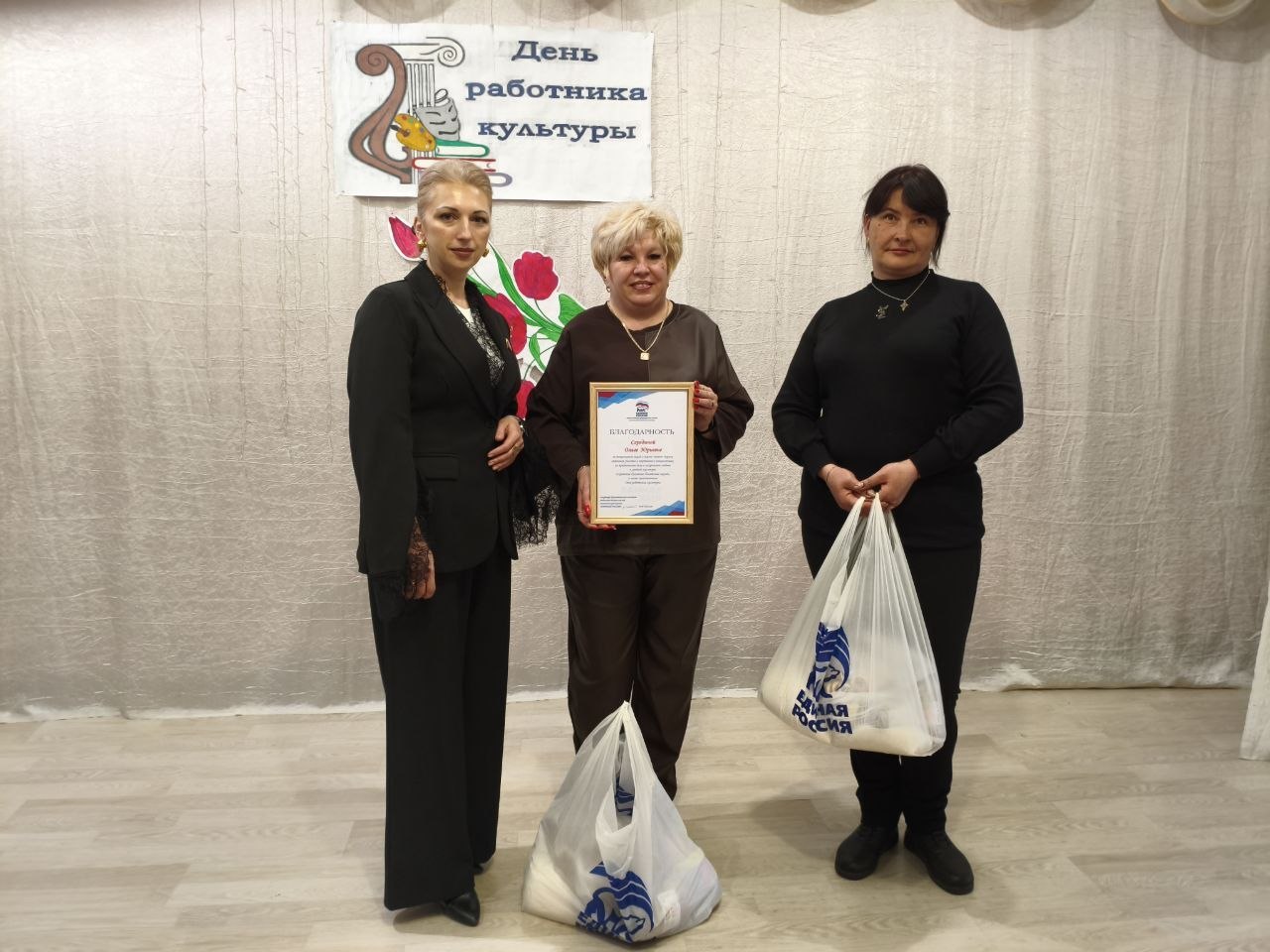 За неоценимый вклад в жизнь нашего округа, активное участие в партийных инициативах, за преданность делу и искреннюю любовь к родной культуре, сохранение духовного богатства народа и в честь празднования Дня работника культуры благодарственными грамотами «Единой России» награждены Дуля Валентина Ивановна и Середина Ольга Юрьевна.