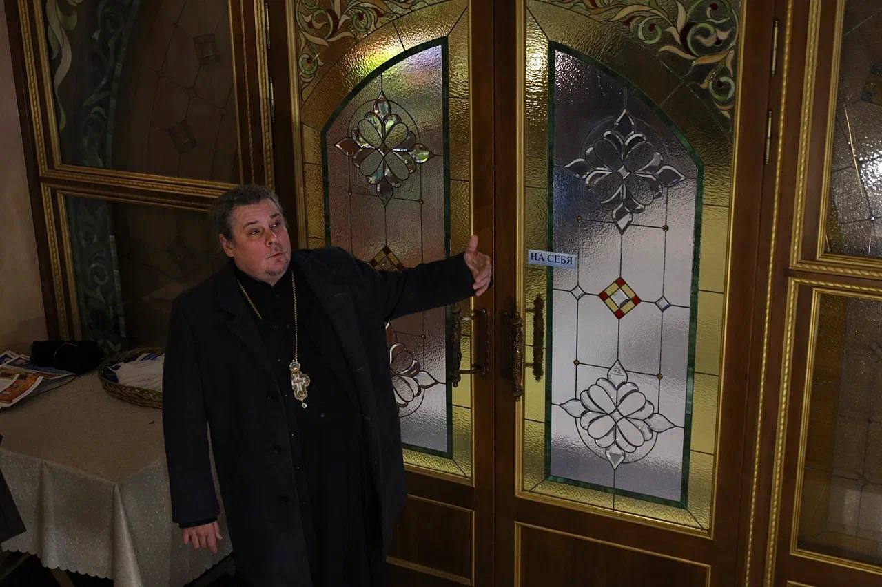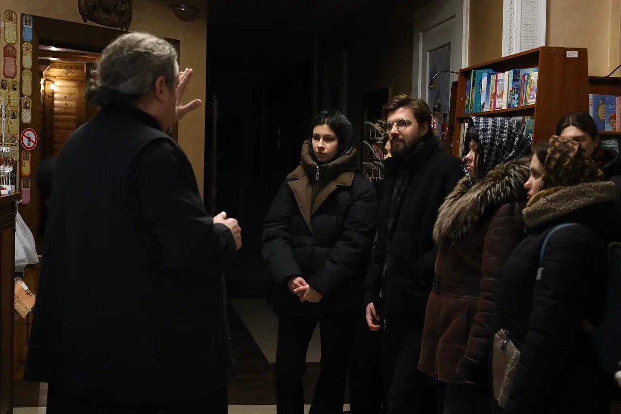 встречу со студентами провел настоятель храма, протоиерей Александр Пономарёв. Он рассказал будущим фотографам и живописцам о канонах и традициях православия.