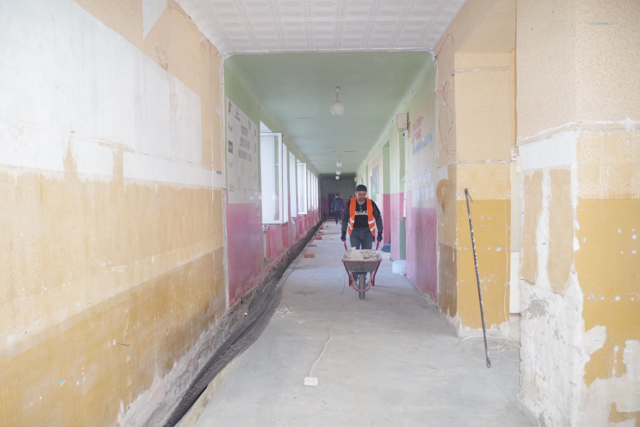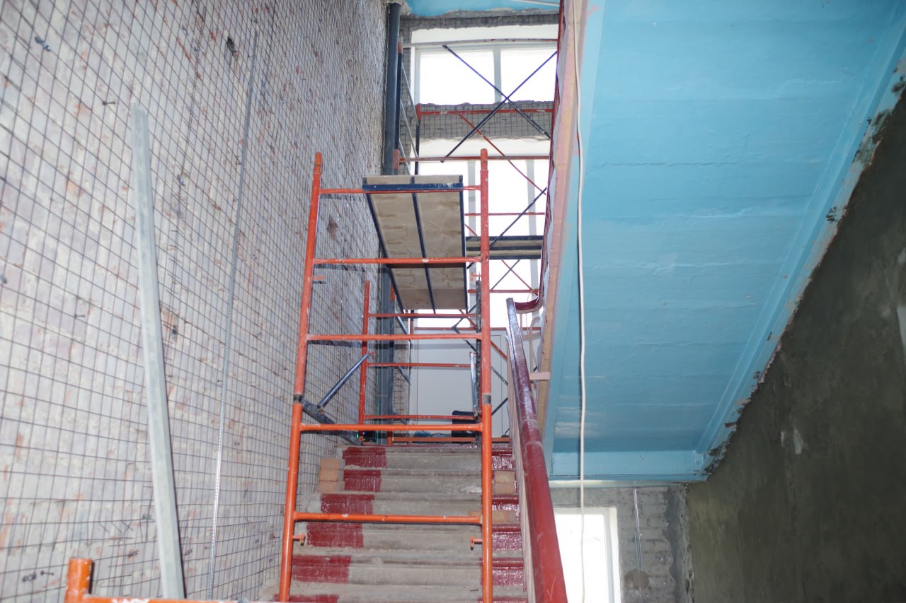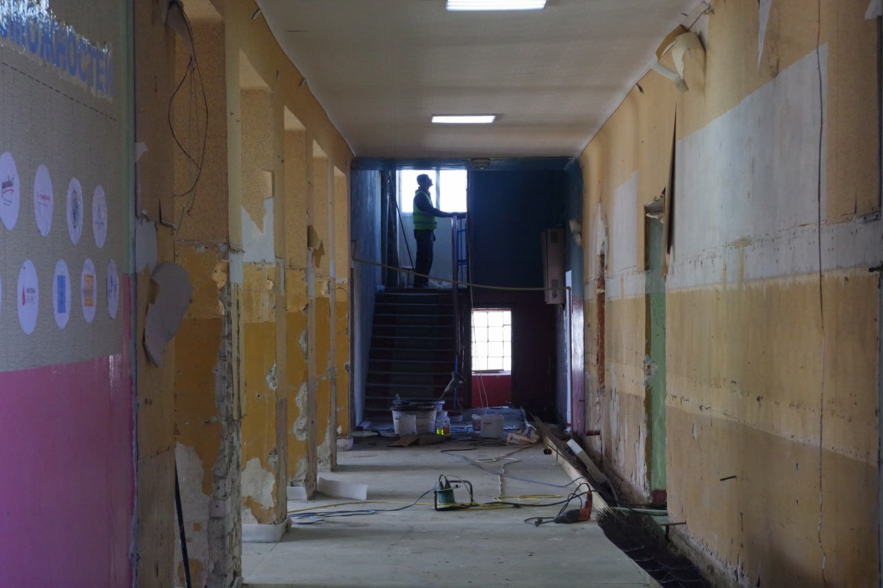 На подготовительном этапе, начавшемся в начале марта, специалисты демонтировали обветшавшие конструкции. Сейчас подрядчик укладывает коммуникации в подпольные каналы, устройство полов в отдельных помещениях и оштукатуривание стен лестничных маршей. В целом ремонт школы выполнен уже почти на 30%. Планируется завершить ремонт к сентябрю 2026 года.