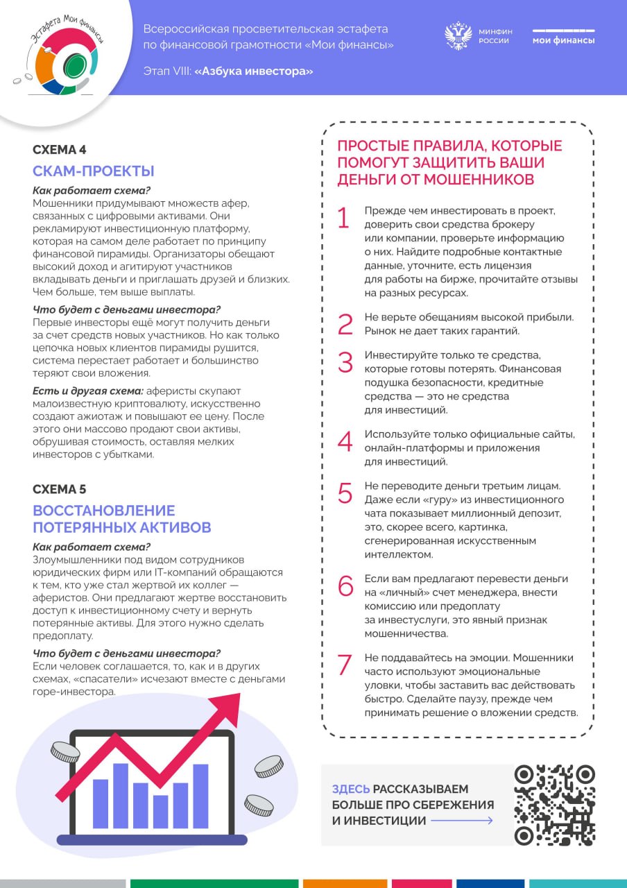 В России стартовал VIII этап просветительской эстафеты «Мои финансы». Предлагаем ознакомится с гайдом "Топ-5 Актуальных схем инвестиционных мошенников".