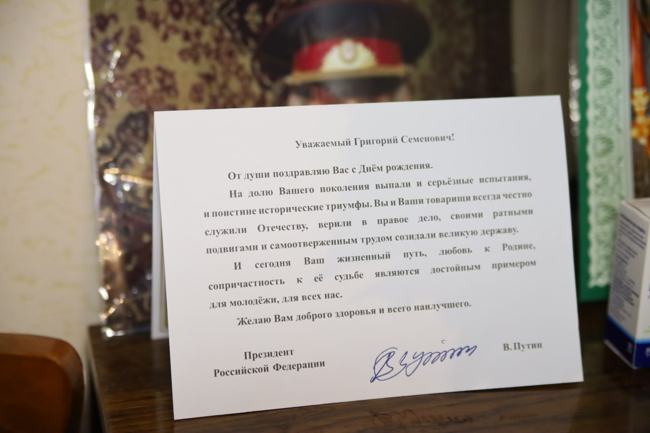 – Забота о ветеранах не должна ограничиваться только празднованием Дня Победы. Эти люди – настоящие герои, которые не только прошли фронт и ковали нашу Великую Победу, но и строили города, в которых мы живём, дома, в которых выросли. Их стойкость и преданность Родине – пример для всех нас. Григорий Семёнович – человек, с которым нас связывают десятилетия знакомства. Мы неоднократно встречались на различных мероприятиях, а в последний раз поздравляли его с наступающим Новым годом. Мы имеем честь поздравить этого замечательного человека с его вековым юбилеем. Но главное – мы получаем бесценную возможность учиться у него настоящей любви к Родине и жизненной стойкости,