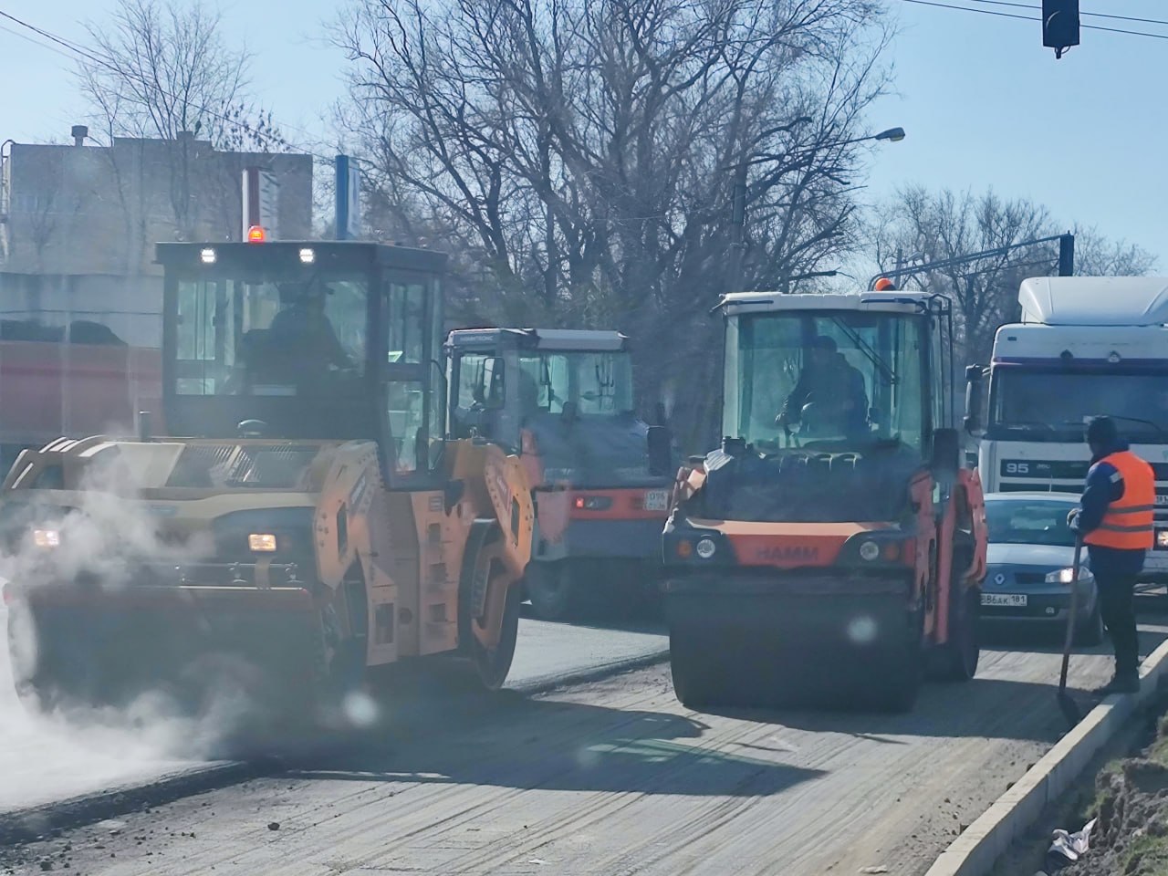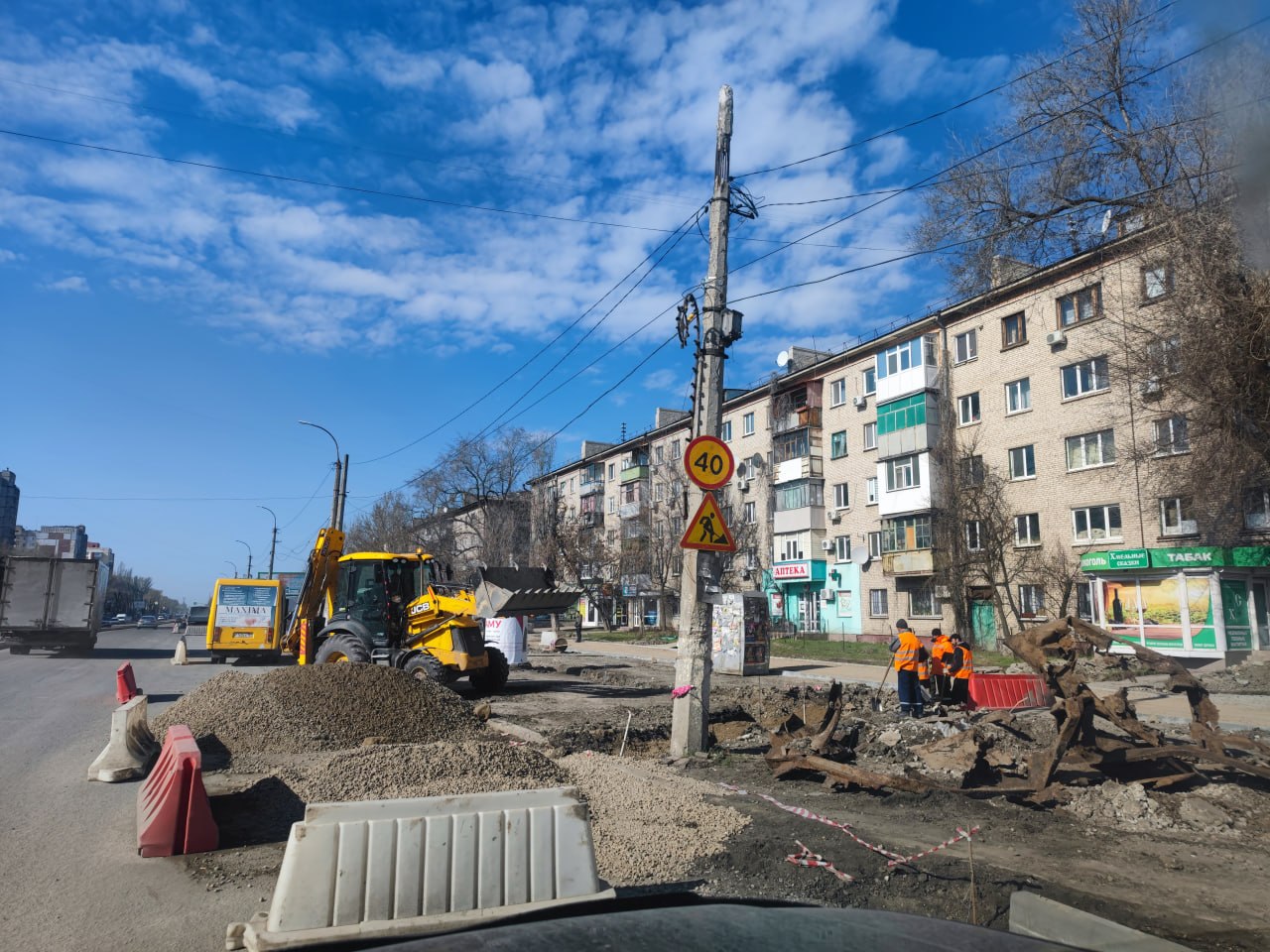 С первым весенним теплом специалисты дорожных и строительных служб приступили к выполнению работ. В данный момент работы ведутся на участке от рынка "Околица" до перекрестка улиц Буденного и Королева.