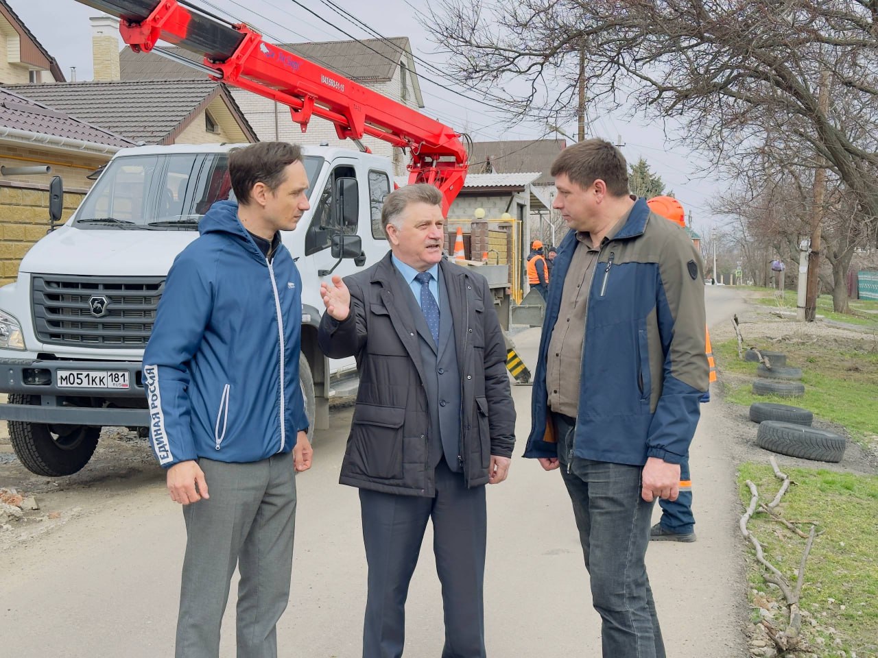 Руководитель фракции Единой России в Совете г.о. город Луганск Юрий Филиппов и муниципальный депутат Егор Бабкин вместе с активистами партии пообщались с подрядчиком и проинспектировали ход работ.