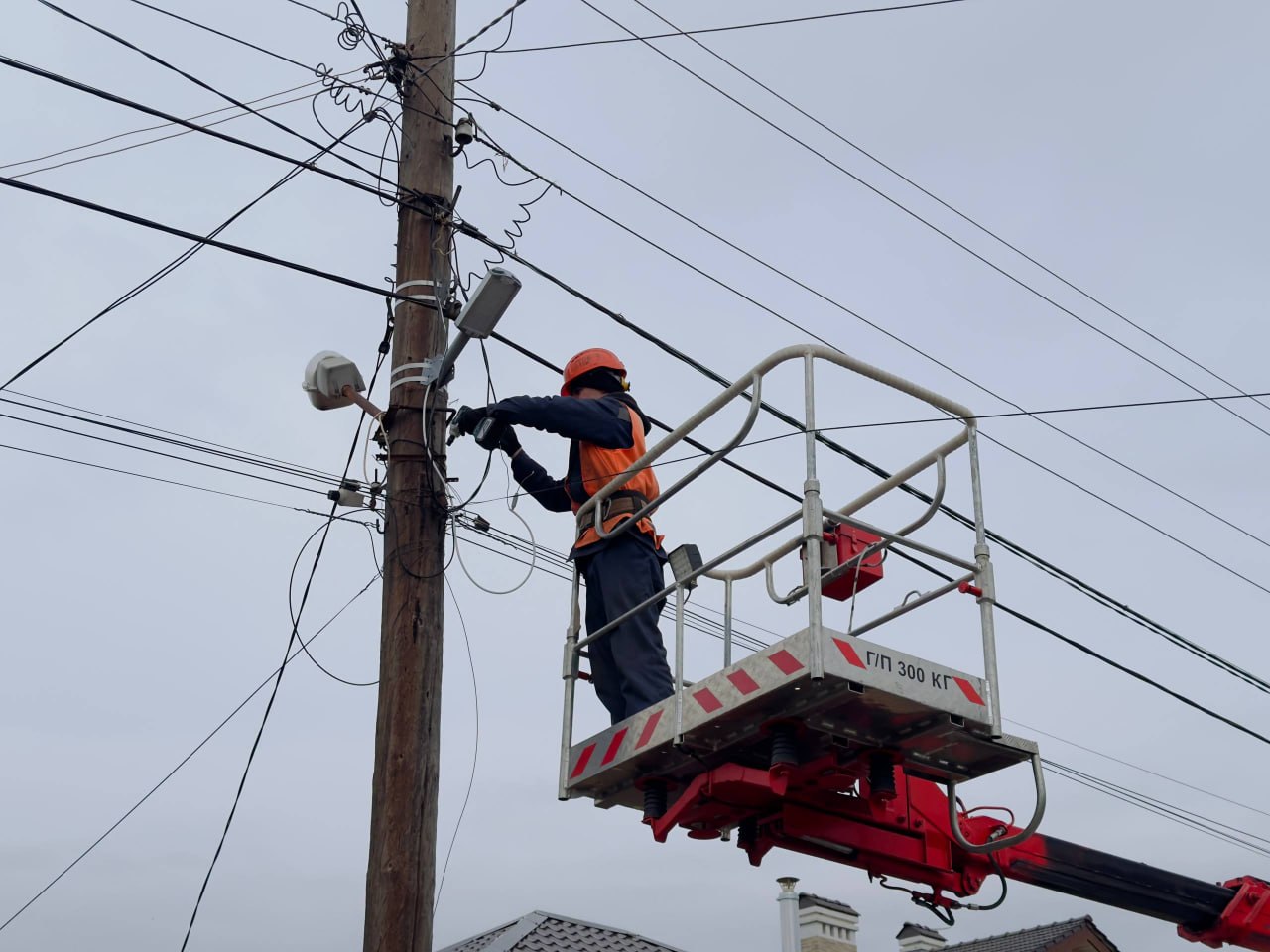В Луганске на улице Артельной – от пересечения с улицей Херсонской до квартала Димитрова по народной программе Единой России ведется восстановление линии наружного освещения: специалисты выполняют монтаж новой воздушной линии электропередачи и устанавливают современные светодиодные светильники.