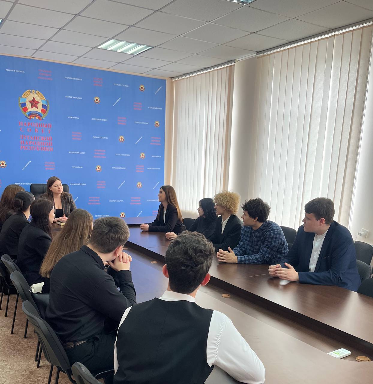 Будущие специалисты посетили заседание Народного Совета ЛНР, где смогли наблюдать за процессом принятия решений. Затем для них была организована открытая встреча с Галиной Дубровой, руководителем фракции ЛДПР в Народном Совете.