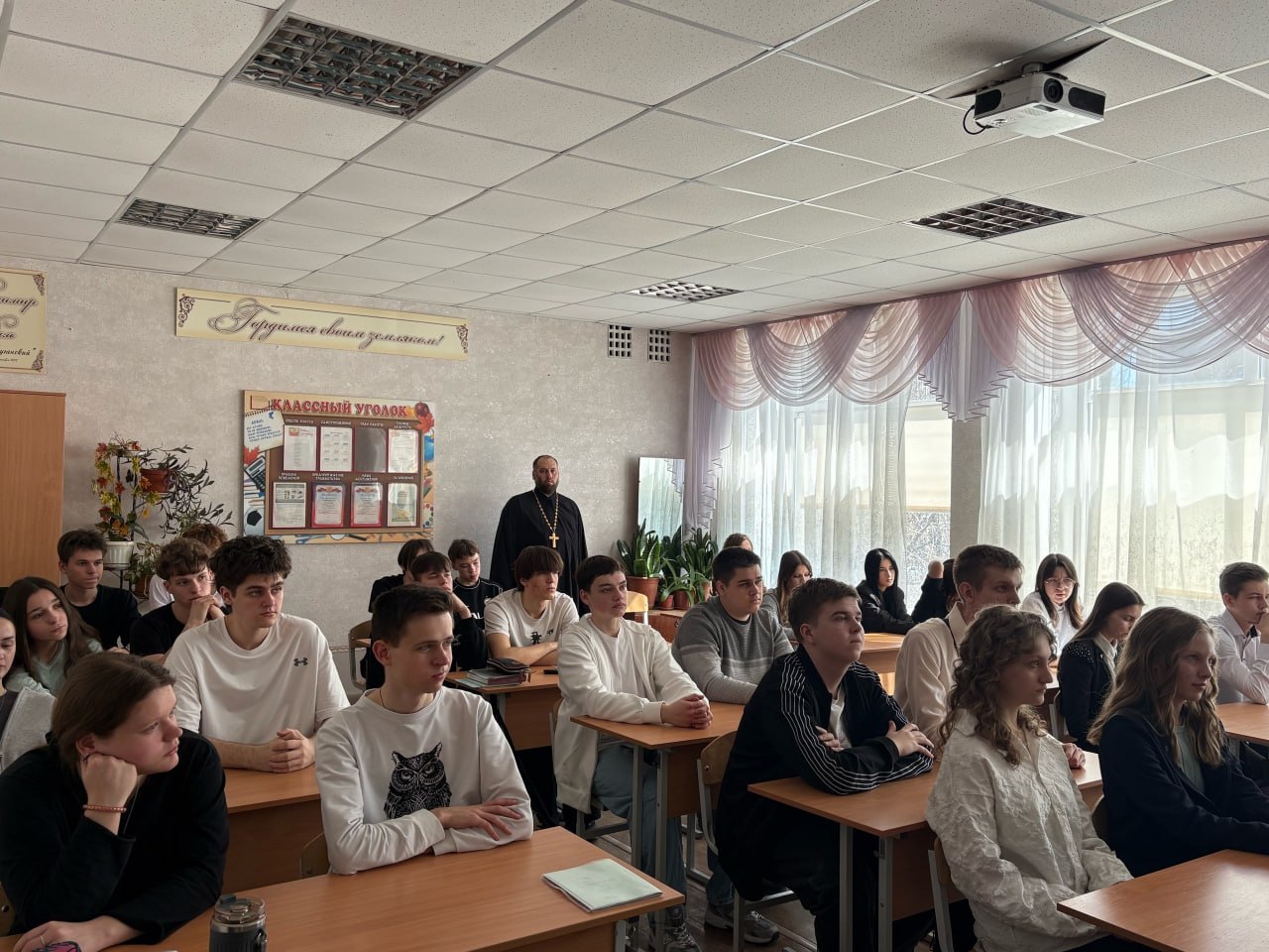 Старшеклассники приняли активное участие в обсуждении поднятых вопросов. В заключительном слове отец Сергий отметил, что семья является основой любого общества, играя ключевую роль в сохранении и передаче духовно-нравственных ценностей, традиций и веры.