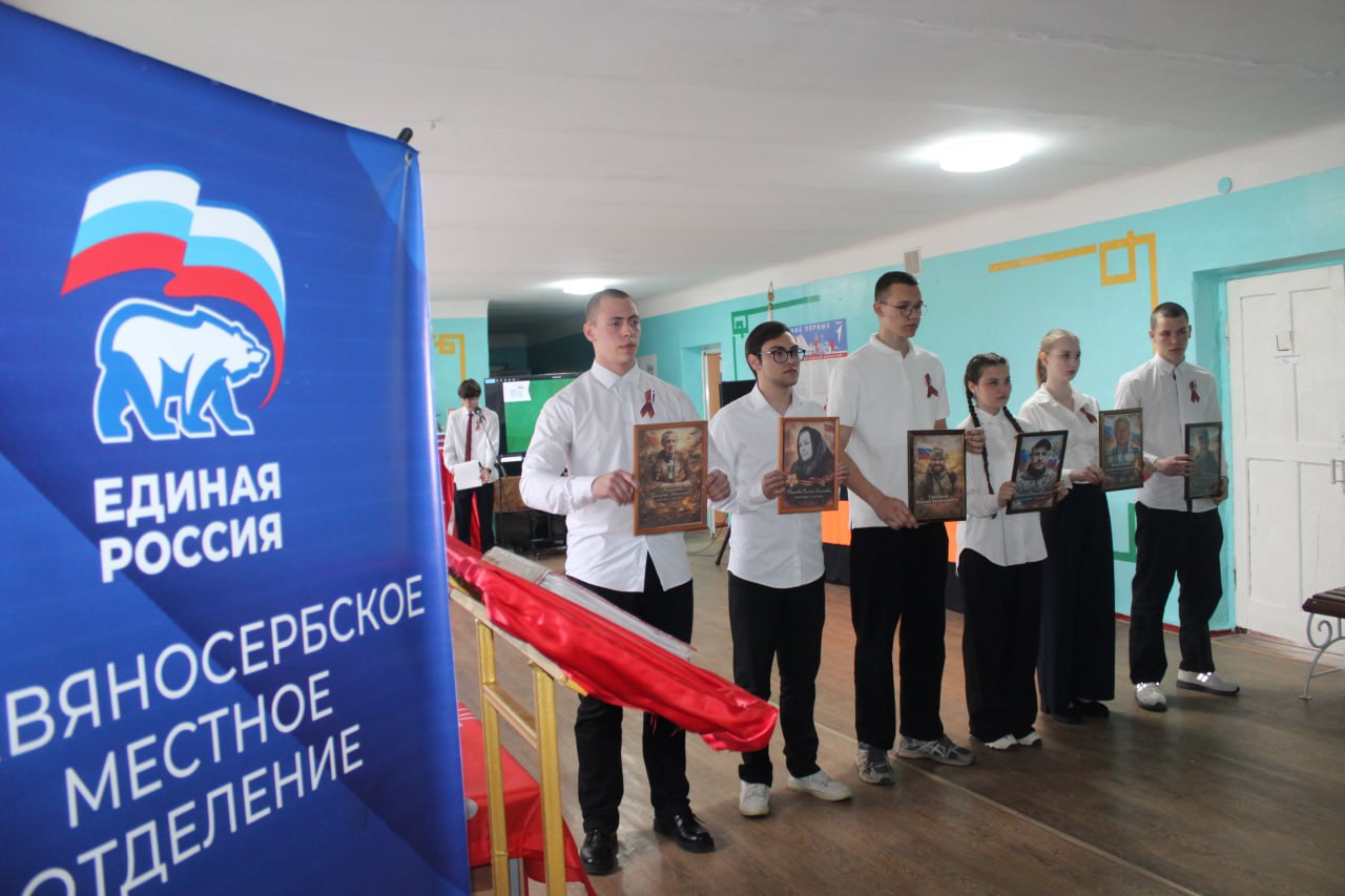 В памятном мероприятии приняли участие Секретарь Славяносербского местного отделения партии «Единая Россия», депутат Народного Совета ЛНР Светлана Гизай, Глава муниципалитета Сергей Крамаренко, Председатель Совета округа Антонина Гречишкина, местный координатор партпроекта «Новая школа» Тамара Горбачева, муниципальные депутаты Светлана Мовчан и Евгений Давыдов, заместитель начальника отдела организации образовательного процесса управления образования по муниципальным образованиям городского округа города Алчевск, Перевальского и Славяносербского муниципальных округов Игорь Гарганов, начальник отдела подготовки призыва граждан на военную службу военного комиссариата Славяносербского района майор Вадим Кузнецов.