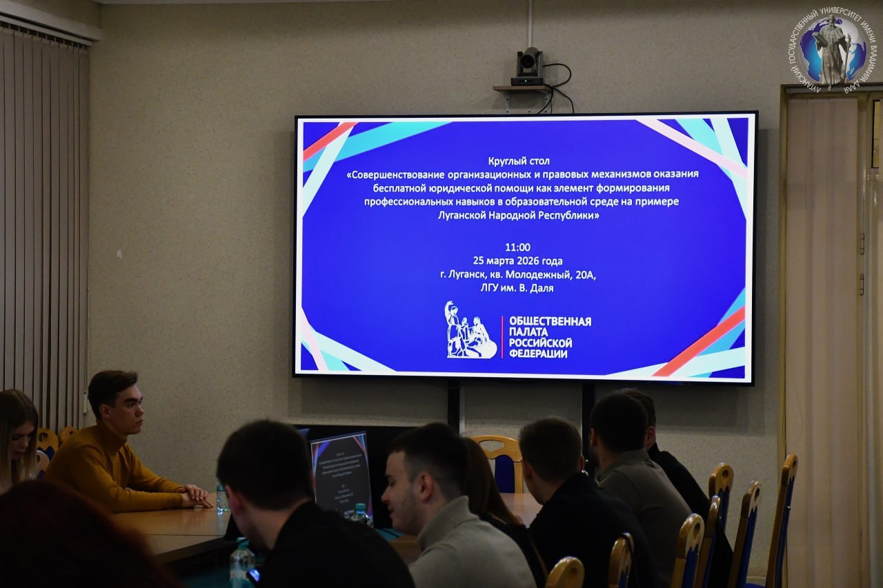 25 марта в Луганском государственном университете имени Владимира Даля состоялся круглый стол, посвященный актуальным вопросам организационных и правовых механизмов оказания бесплатной юридической помощи. Мероприятие, собравшее ведущих экспертов и правоведов, было организовано Комиссией по развитию высшего образования и науки Общественной палаты Российской Федерации совместно с Юридическим институтом ЛГУ им. В. Даля. Главной целью встречи стал комплексный анализ действующей системы бесплатной юридической помощи в России, обмен лучшими региональными и федеральными практиками, а также выработка конкретных предложений по повышению доступности и качества такой помощи для граждан.