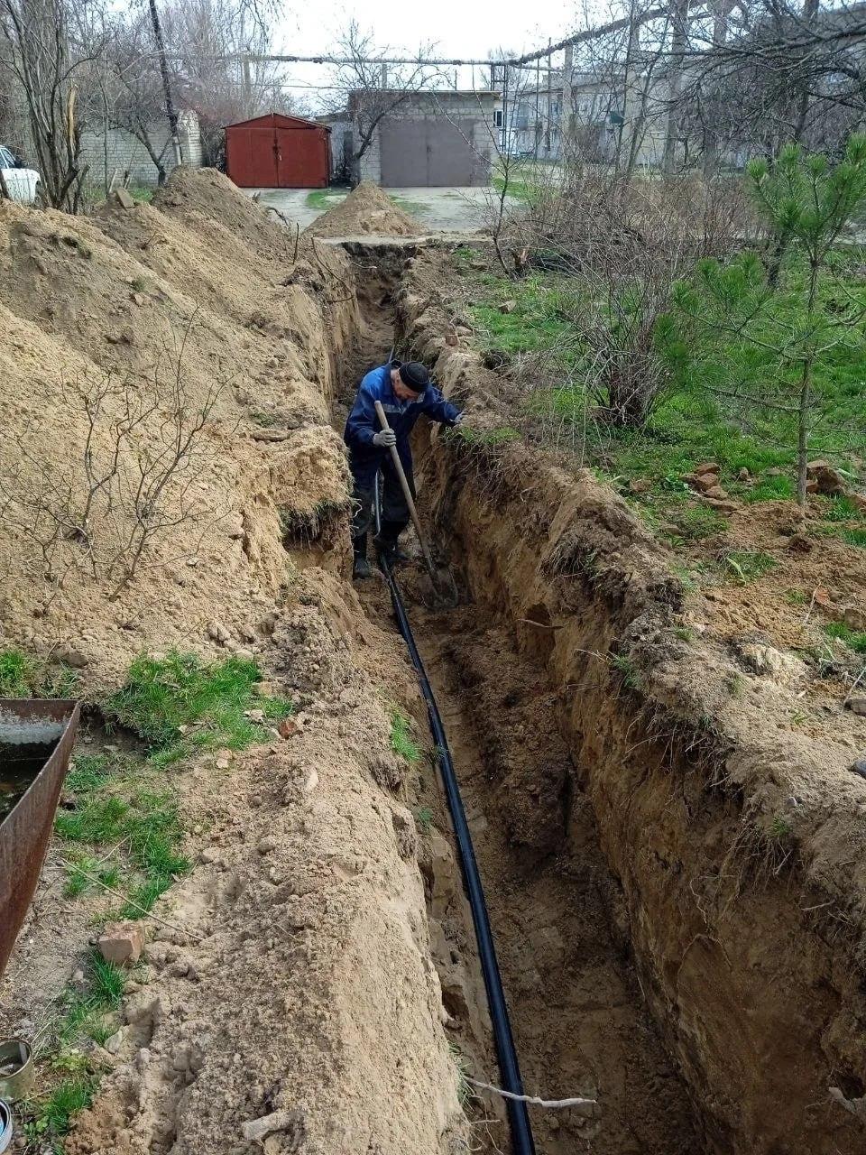 Новую пластиковую трубу протяженностью порядка 100 м и диаметром 50 мм прокладывают по ул. Советской взамен старой, износ которой достиг 90%. После выполнения работ улучшится водоснабжение 3 жилых домов, всего порядка 100 абонентов.
