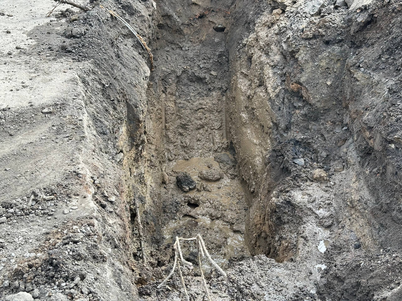 Представителями Ровеньковского департамента на выходных была проведена работа над устранением данной ситуации механическим способом при помощи троса. Мероприятие не принесло результата и уже сегодня проводится вскрытие, которое показало, что произошла разгерметизация центрального коллектора и попадание грунта во внутрь.