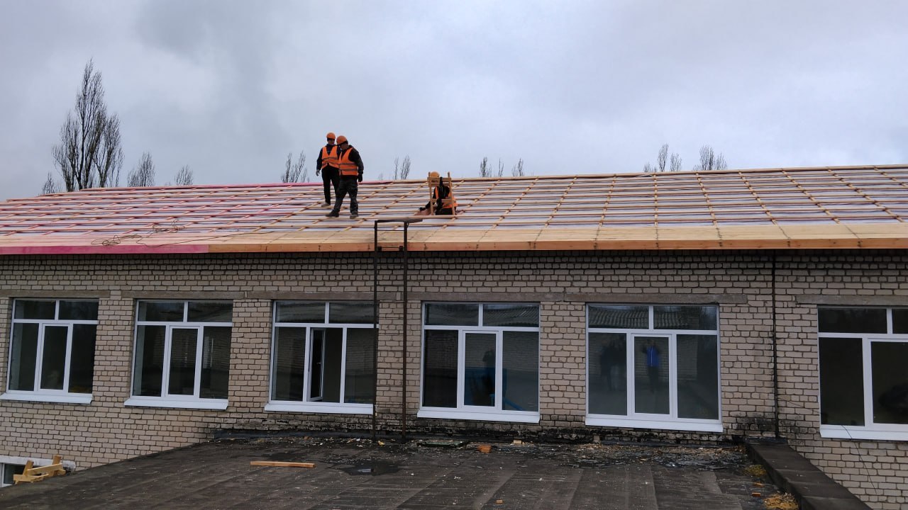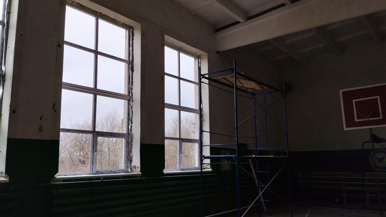 В пгт Центральный восстанавливают школу после обстрела