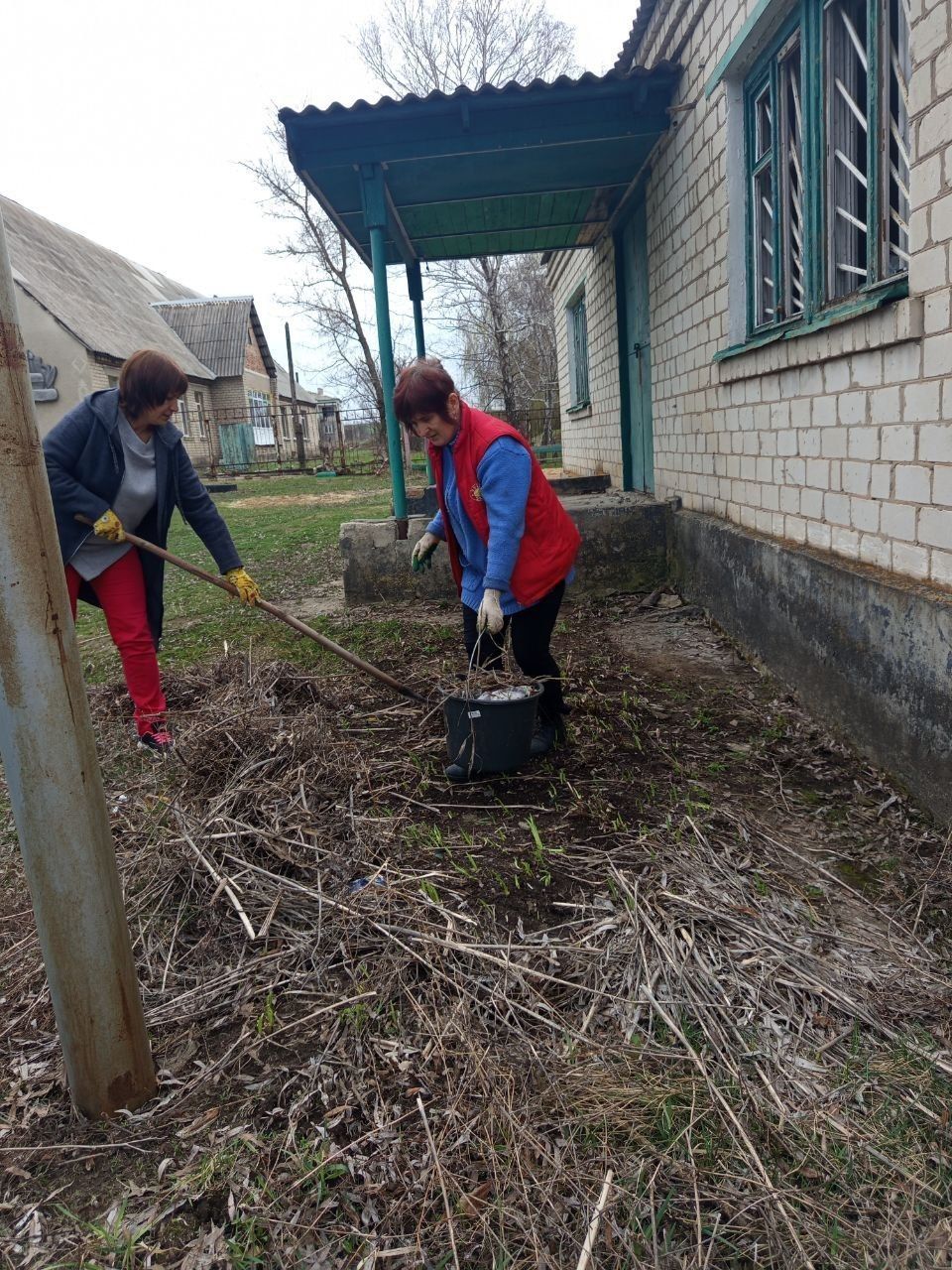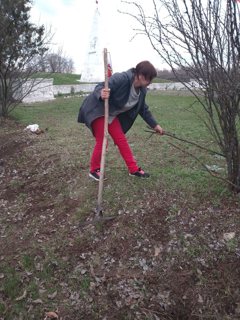 в с.Червоный Жовтень, сотрудники отдела жизнеобеспечения и сельского дома культуры провели субботник на территории памятника "Павшим воинам "