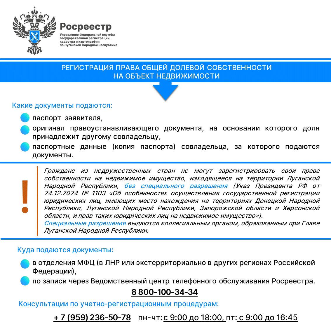 Соответствующий Указ принят Главой ЛНР Леонидом Пасечником. Теперь госрегистрация может проводиться по заявлению любого участника общей долевой собственности.