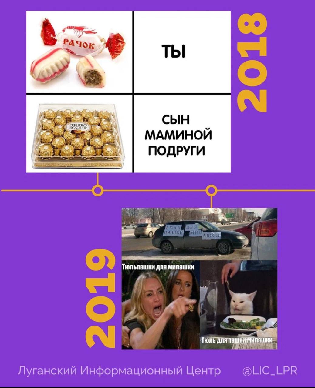 В Средние века на полях рукописей рисовали злободневные, поучительные или развлекательные картинки — маргиналии — настоящие «прадедушки» современных мемов! В XVIII–XIX веках по Российской империи распространялись сатирические гравюры — и отечественные, и зарубежные. Например, знаменитая британская карикатура, где Наполеон делит земной шар, словно пирог : весь смысл — в одной картинке. А в журналах начала XX века уже использовался формат «ожидание — реальность на свидании».