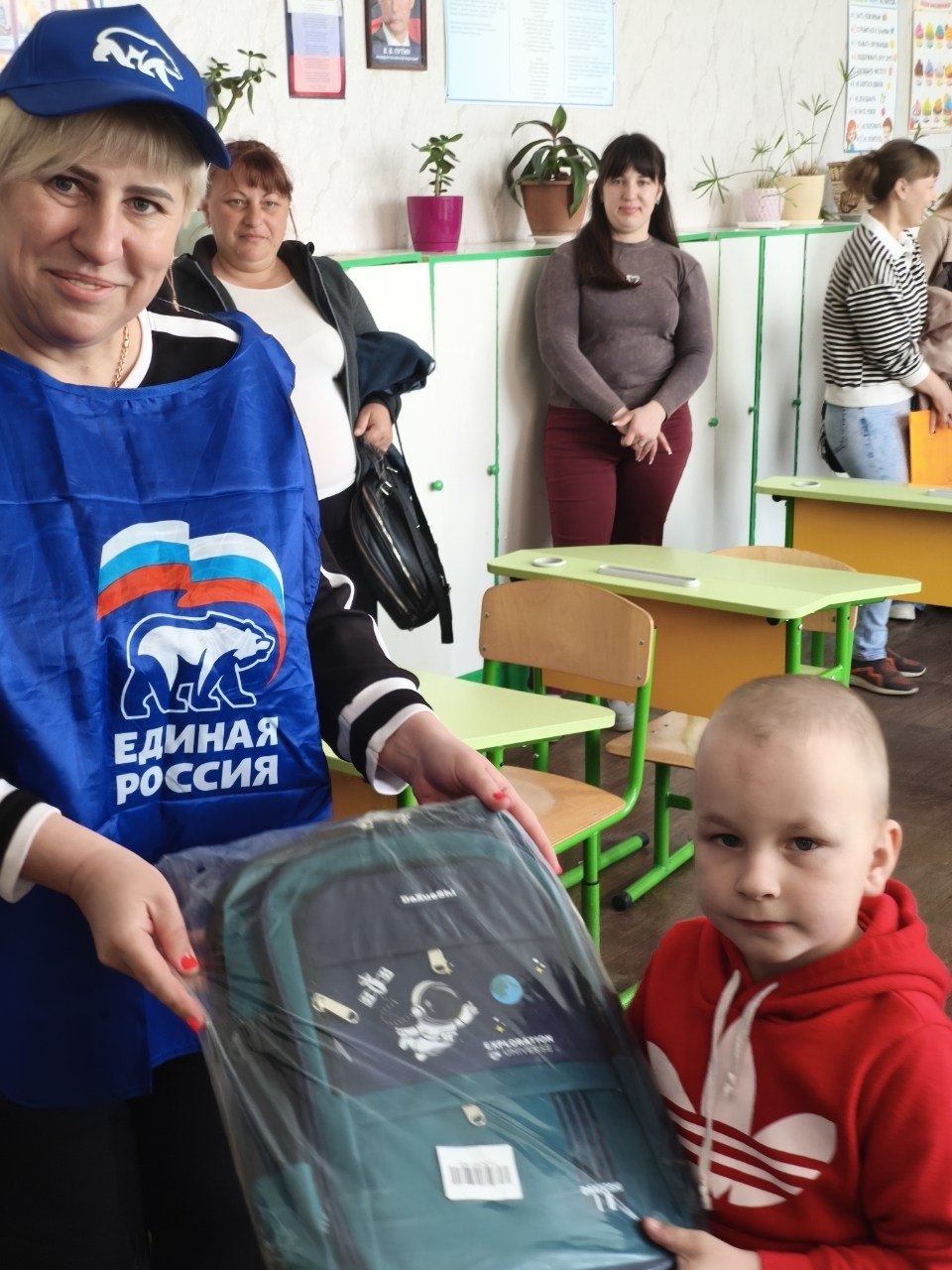 Мероприятие началось с радостных событий. Татьяна Алексеевна Литвинова, сторонник партии «Единая Россия», обратилась к будущим ученикам с поздравлениями. В знак приветствия детям вручили рюкзаки и наборы для творчества.