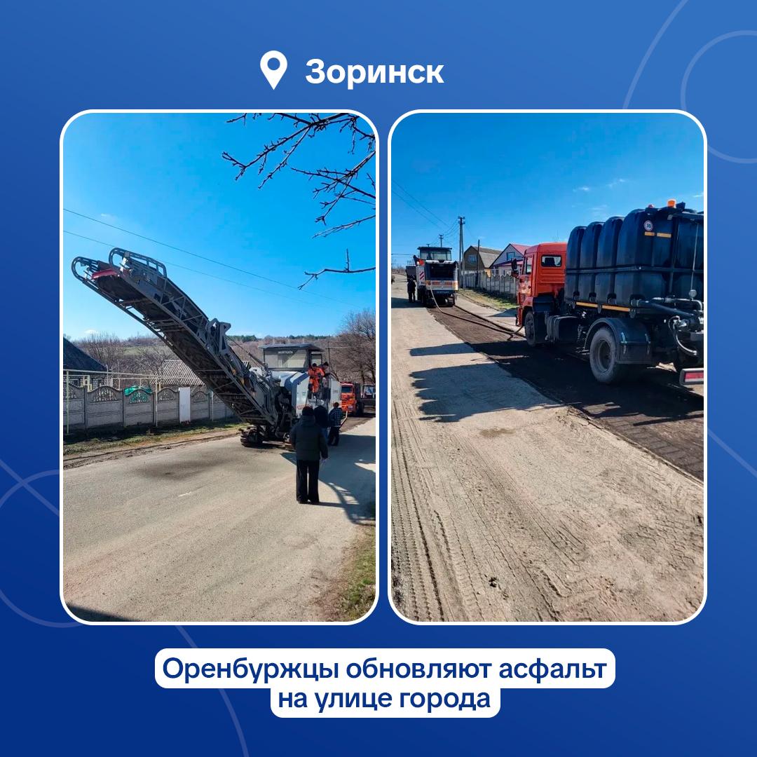 Подрядная организация Оренбургской области приступила к ремонту асфальтового покрытия автомобильной дороги в г. Зоринске. На первом этапе специалисты снимают срез старого покрытия.