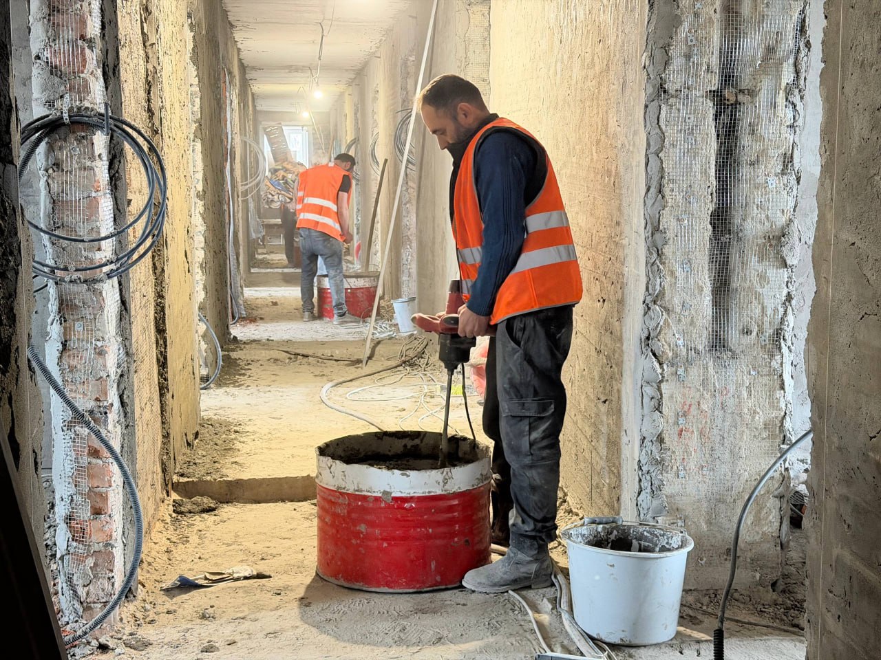 – В данный момент уже полностью, на 100%, произведен демонтаж отделки стен в коридоре и в каждой комнате, произведена полная замена электропроводки. Ведутся работы по штукатурке стен и замене водопровода. После окончания отопительного сезона будет произведена полная замена отопительной системы, – рассказал начальник участка Константин Фелчук.