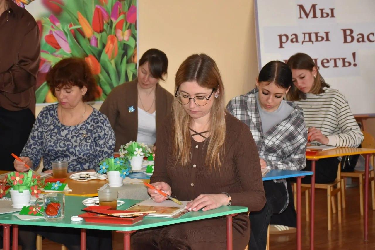 Воспитатели Подгорная Любовь Андреевна и Гупал Татьяна Петровна провели мастер-класс с коллегами "Рисование картины "Веточки вербы".