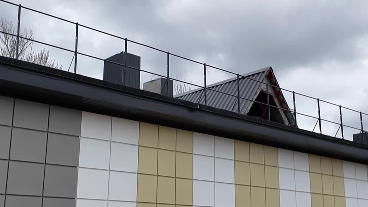 «Чуть-чуть появились коррективы в вентиляции. Пришлось снять вату, сейчас заново её стелем. На кровле нам необходимо ещё поставить доборные элементы на вентшахты, утеплить минеральной ватой. Также мы планируем, даже не планируем, а уже начали устройство лестничной площадки. И занимаемся входной группой, там идут сварочные работы».