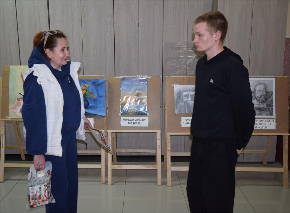 С особенным торжеством персональную выставку Родиона Цыбули "Палитра: Путешествие по Техникам" посетили высокопоставленные гости, подчеркнув значимость момента для молодого мастера и всего округа. С теплыми словами поздравлений и искренней поддержкой выступила Боярская Инна Викторовна, начальник отдела по культуре, делам молодежи, спорта и физической культуре Администрации муниципального образования Кременской муниципальный округ. Она отметила талант ученика благодарностью и подарком, его усердие и преданность искусству, пожелав дальнейших успехов в творческом пути и новых ярких достижений.