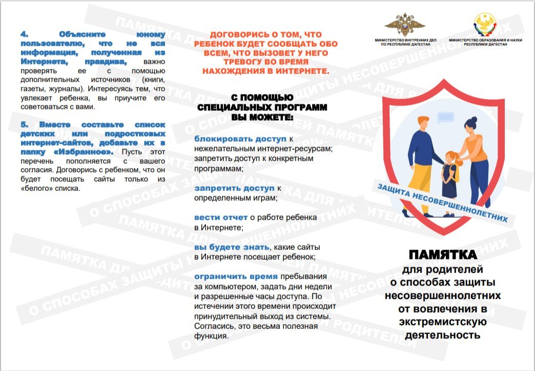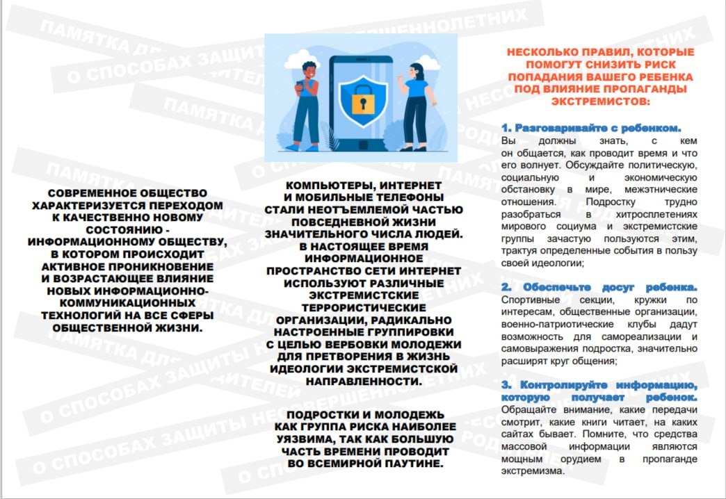 Памятка для родителей о способах защиты несовершеннолетних от вовлечения в экстремистскую деятельность