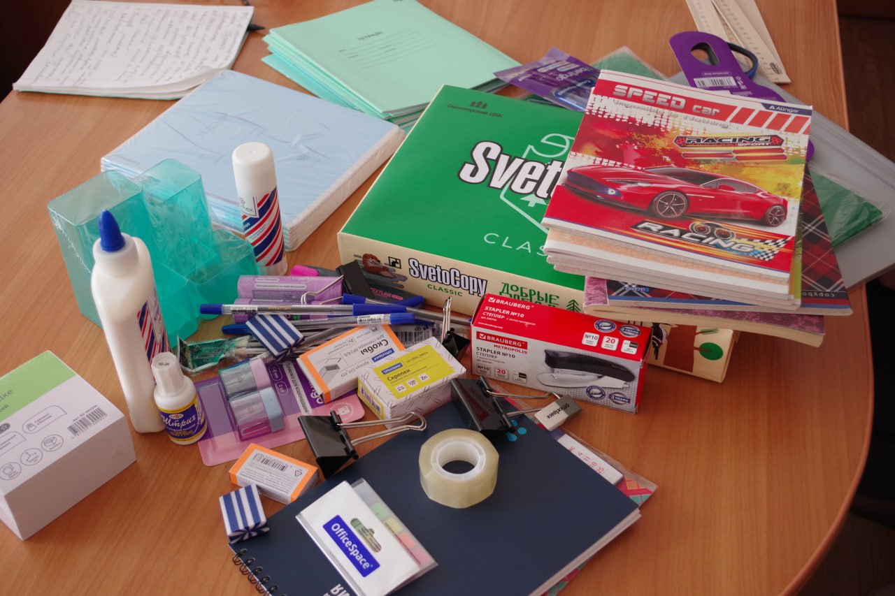 Особое внимание уделили практической помощи. Передали совету ветеранов канцелярские принадлежности для работы.