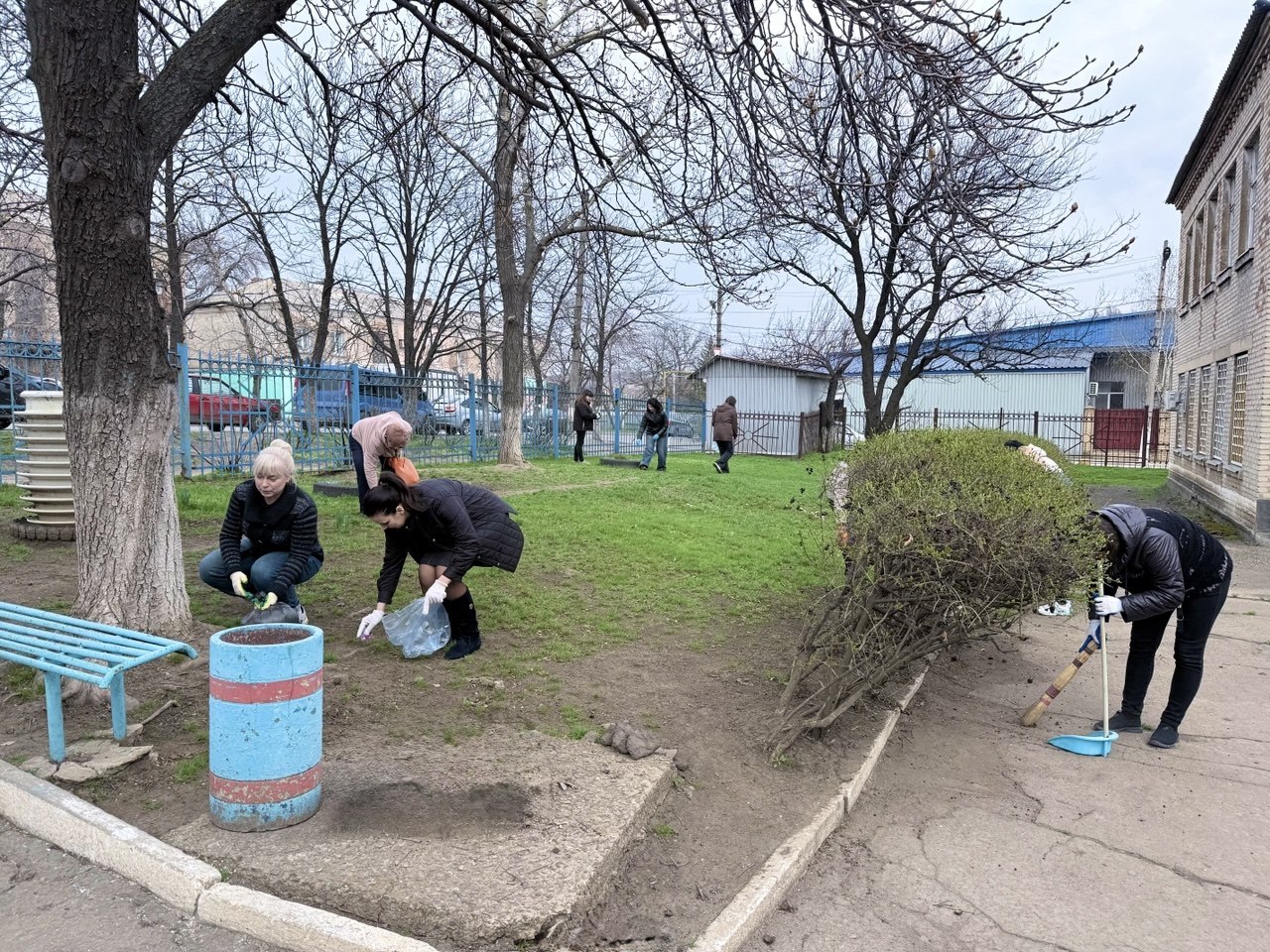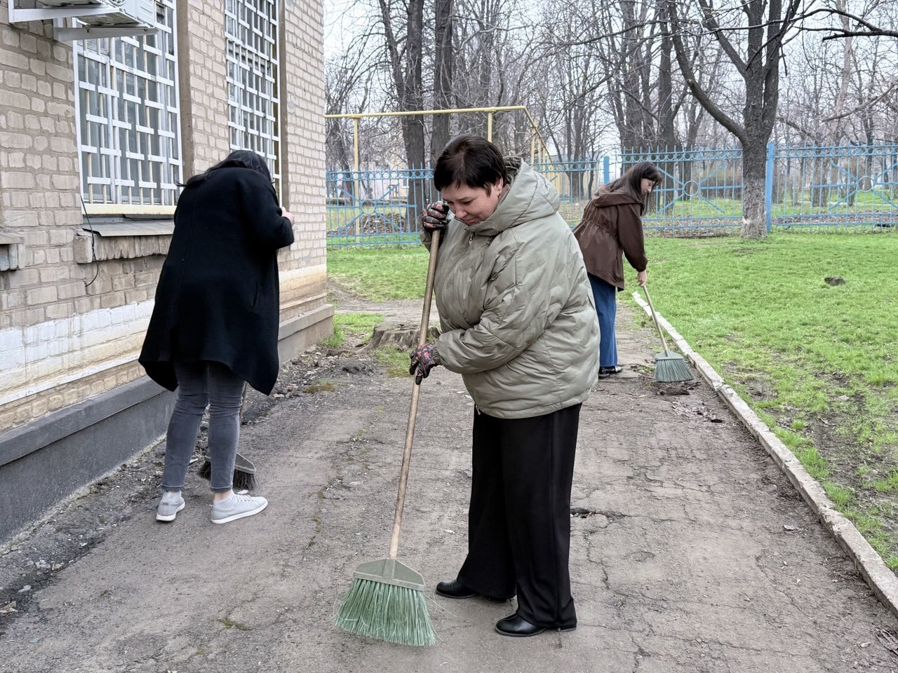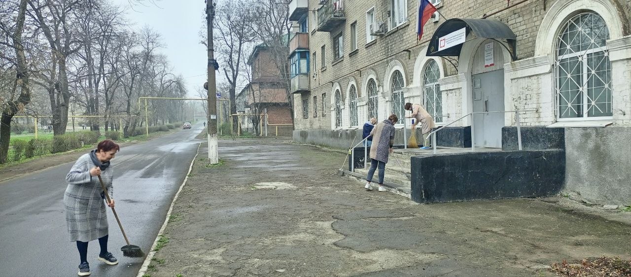 Сотрудники филиала № 13 ГКУ ЛНР «РЦСЗН» в г. Красный Луч, а также сотрудники МБУ «КЦГБ им. Н.К. Крупской» присоединились к субботникам. Каждое учреждение привело в порядок свою прилегающую территорию: специалисты собрали мусор, ветки, опавшую листву и подмели дорожки.