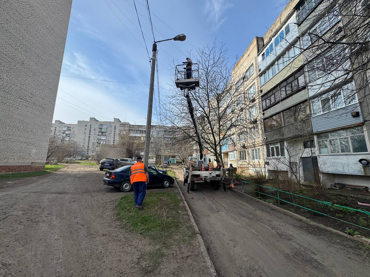 Специалисты МУП «ДЭУ» продолжают планомерную работу по ремонту и обслуживанию уличного освещения в округе. В городе Молодогвардейске сегодня ведутся работы, направленные на замену ламп, восстановление линий наружного освещения и оперативное устранение возникающих поломок.