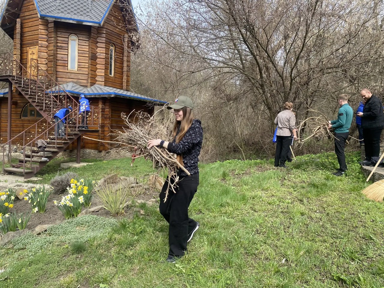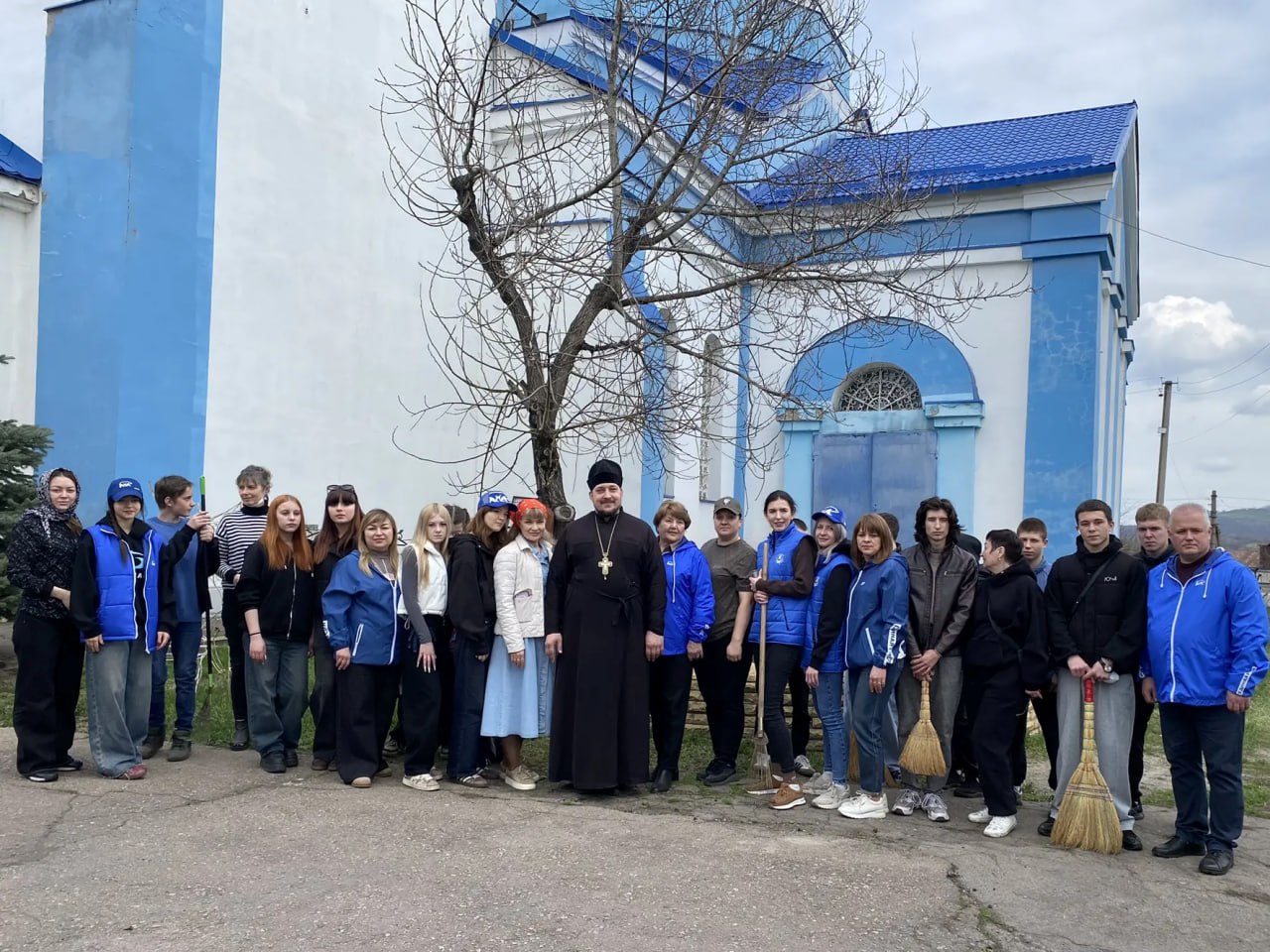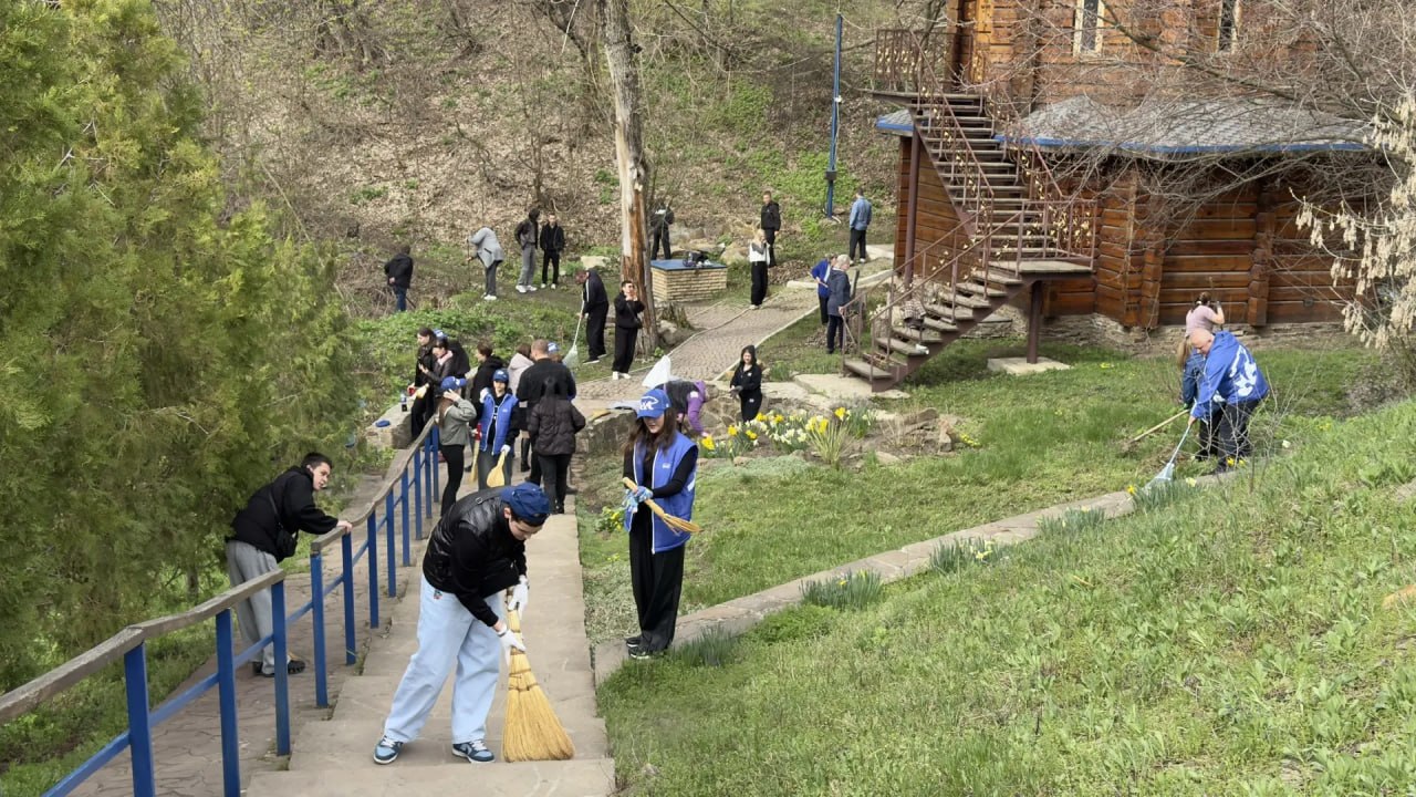 Активисты вооружились вениками, граблями и инвентарём, убрали территорию возле купели и вокруг храма.