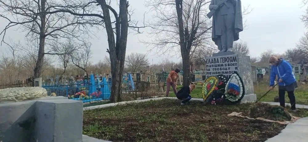 В пгт. Хрустальное убрана прилегающая территория братской могилы советских воинов от сухой листвы, травы и сухостоя, в г. Вахрушево произведена очистка бордюр вдоль автодороги по улице Калинина, убрана прилегающая к административному зданию территория в г. Миусинск.