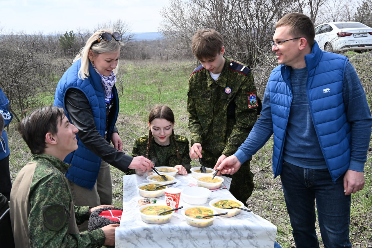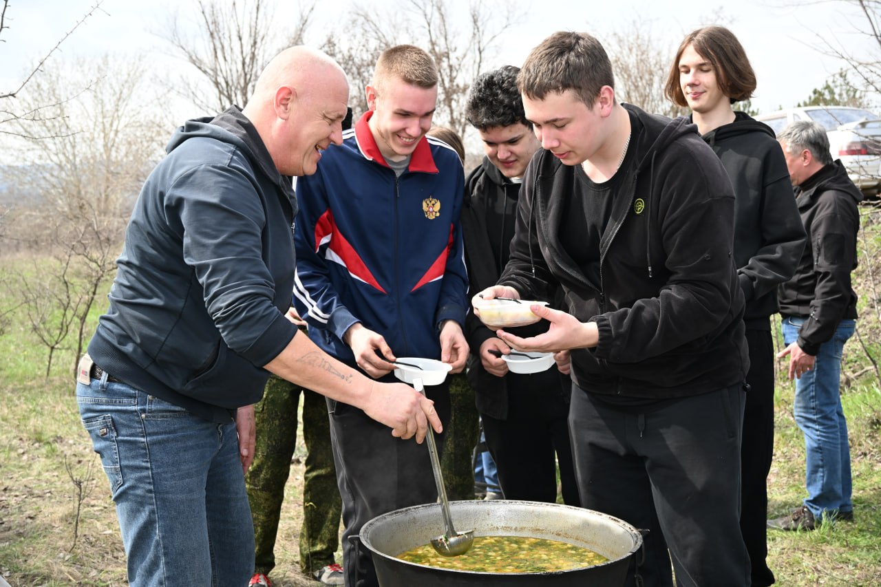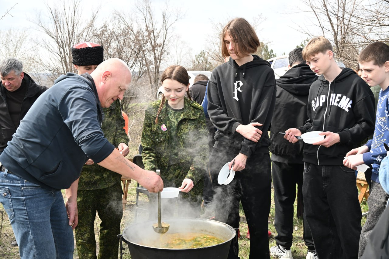 А после работы нас ждал сюрприз от городского казачества — горячий кулеш и сладкие гостинцы. И надо сказать, после активного труда на свежем воздухе этот кулеш ушёл просто влет! Ребята нахваливали поваров, просили добавки и, кажется, готовы были съесть ещё не по одной тарелке. Акция прошла по-нашему, по-брянковски: душевно, сытно, с теплом.