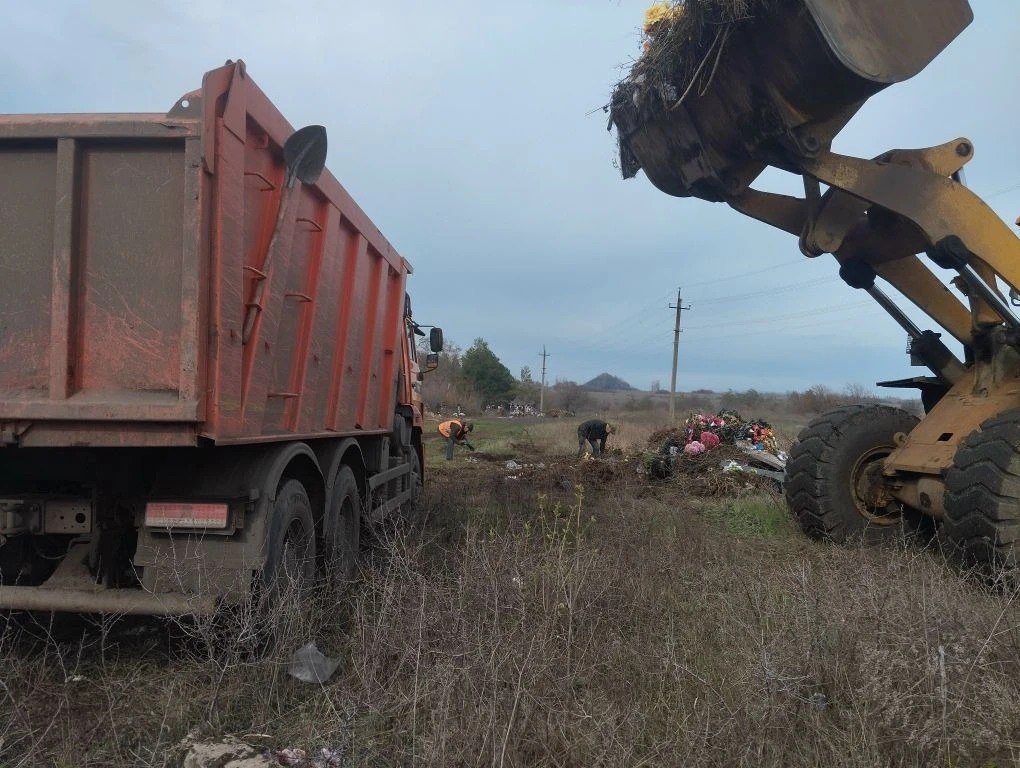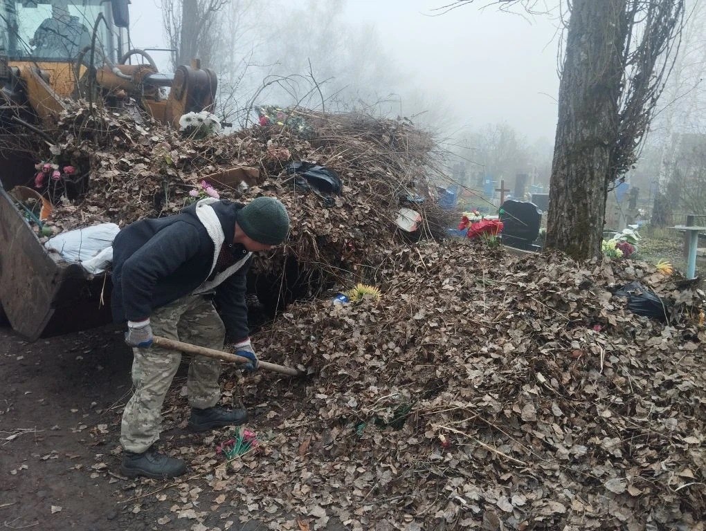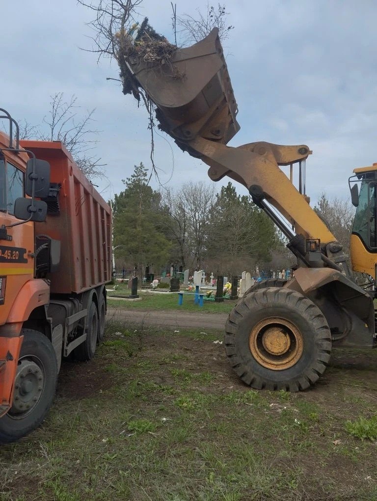 Ровеньковские коммунальщики продолжают уборку кладбищ городского округа к Пасхе