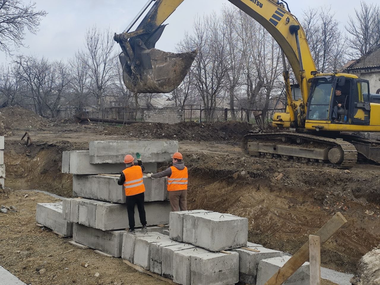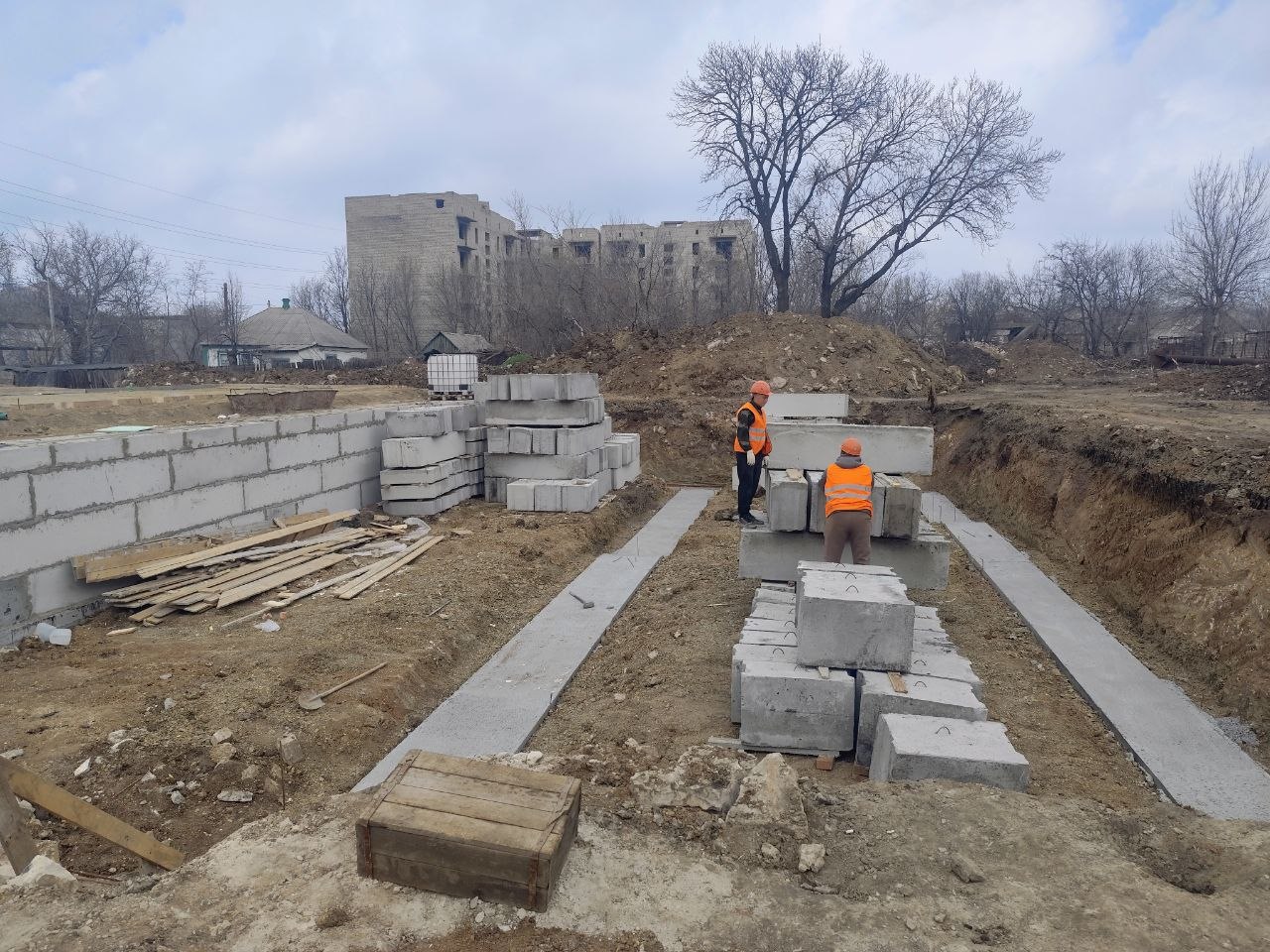 На данный момент строители выполнили уже значительный объем работ: полностью готов фундамент будущего сооружения, начались работы по возведению стен.