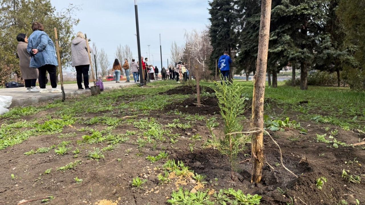 Также, активисты приняли участие в акции «Сад памяти» и общими усилиями высадили 20 саженцев туи.