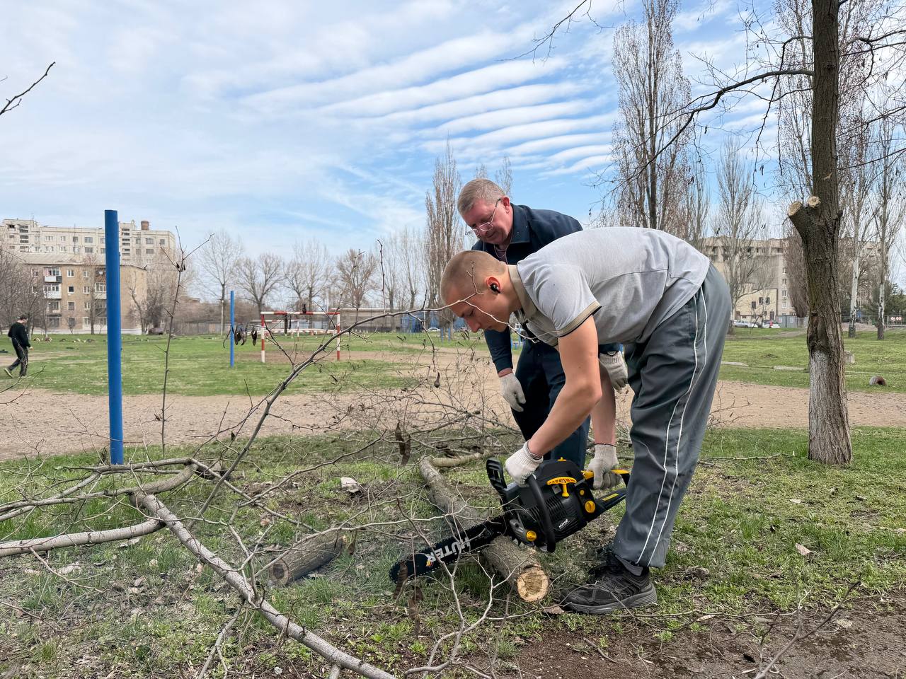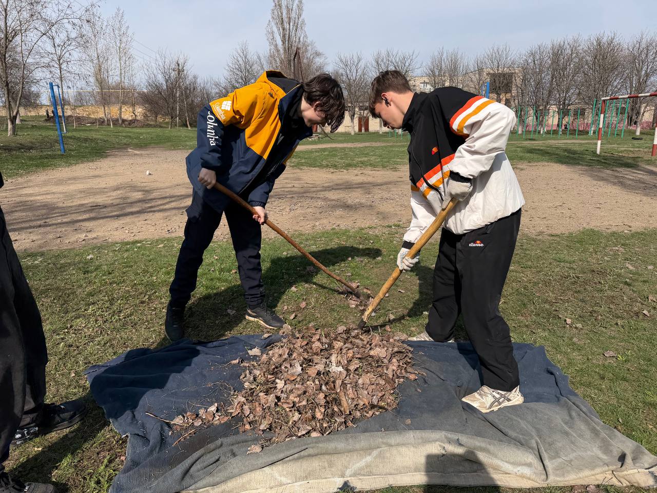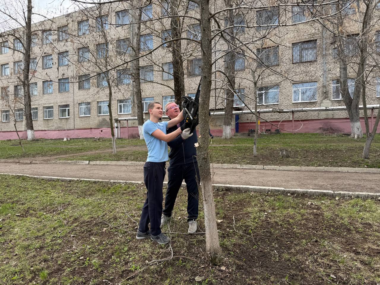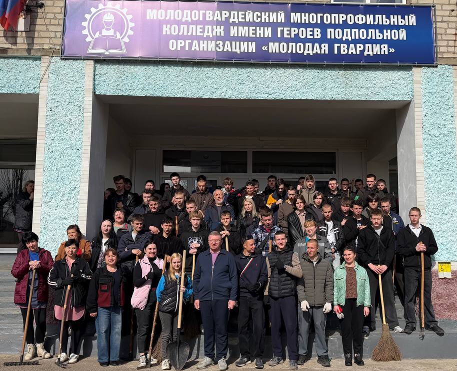 Фотофакт: В Молодогвардейском многопрофильном колледже имени героев подпольной организации «Молодая гвардия» продолжается активная работа по благоустройству территории учебного заведения.