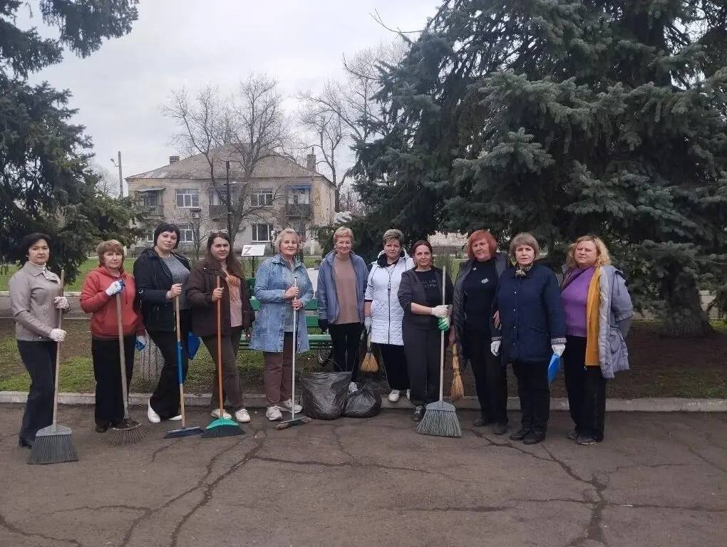 К санитарной пятнице активно присоединился коллектив Антрацитовской средней школы № 10: совместно со старшеклассниками педагогический коллектив, технический персонал навели порядок в центральном сквере, собрав сухие ветки, мусор, остатки прошлогодней листвы.