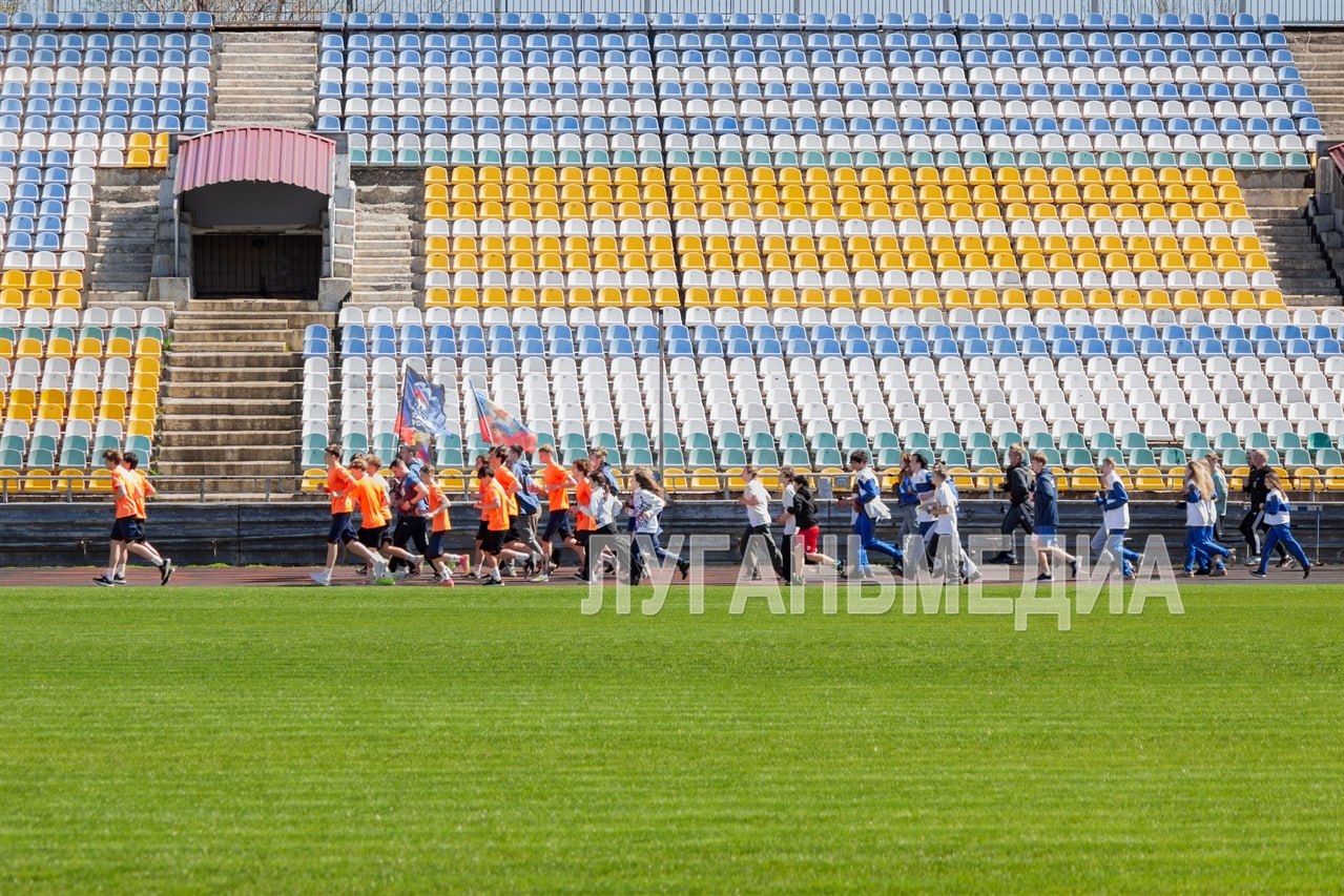 После разминки воспитанники спортивных школ, студенты и все желающие жители города Луганска провели массовый забег по дорожкам стадиона.