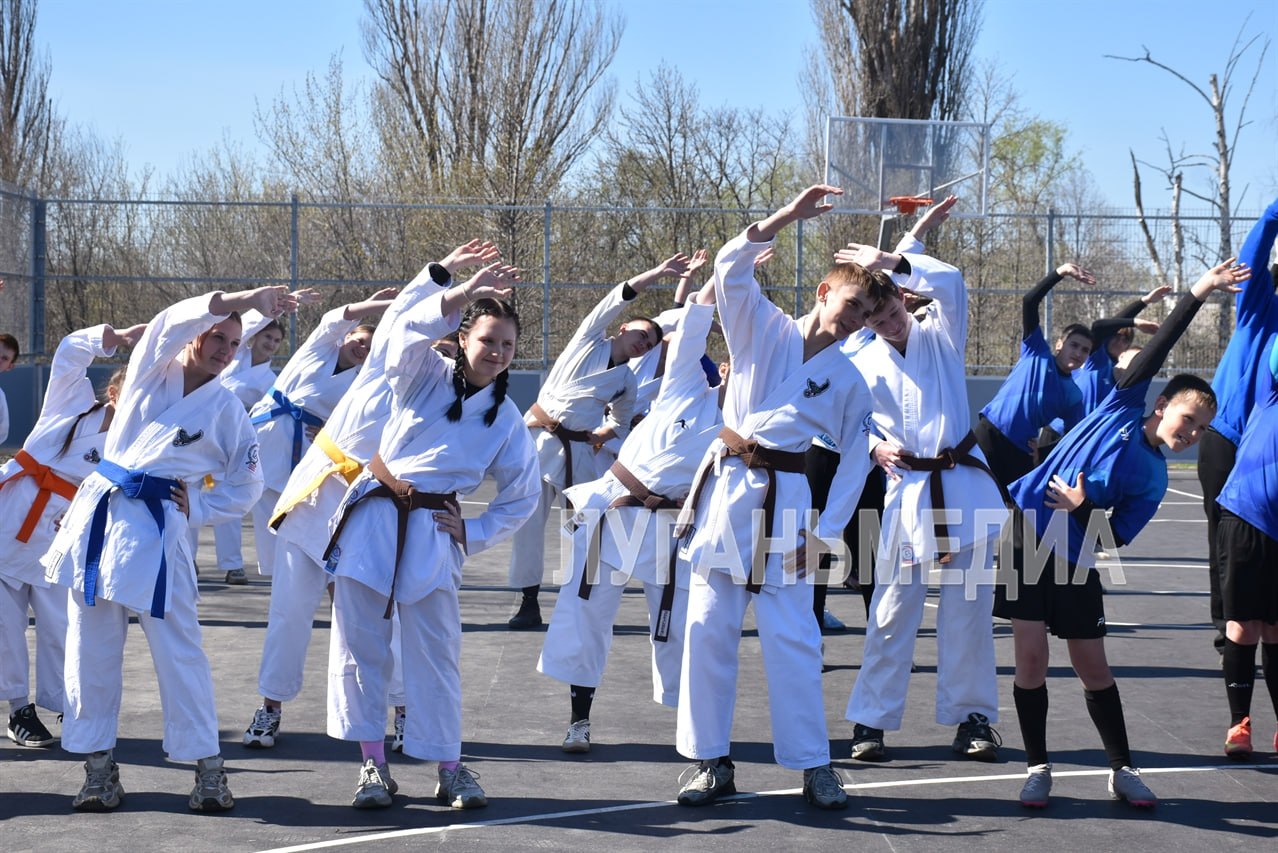 После торжественной части все желающие присоединились к общей разминке под руководством опытных тренеров Лутугинской спортивной школы.