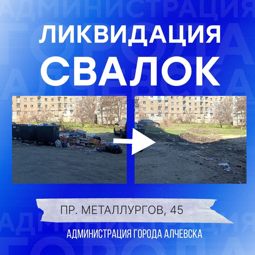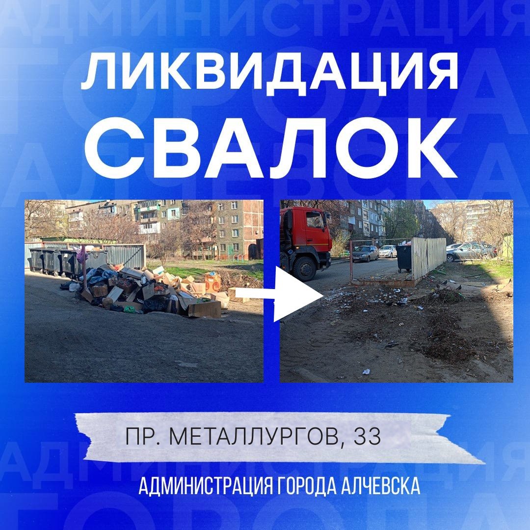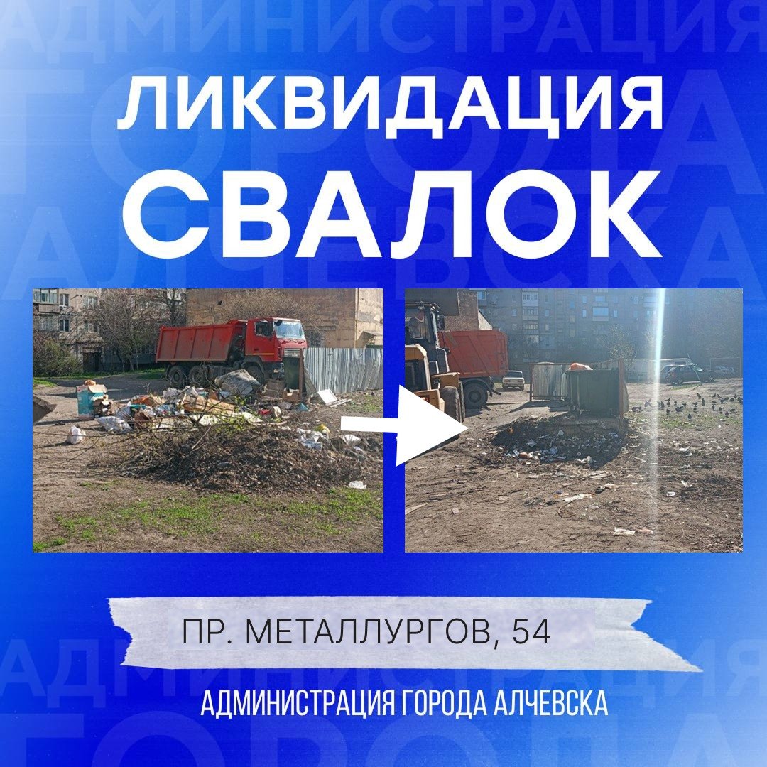 Работниками МУП «Экотранссервис города Алчевска ЛНР» и МУП «Служба дорожного хозяйства и благоустройства города Алчевска ЛНР» ежедневно на территории города выполняется вывоз твердых коммунальных отходов и уборка свалок.
