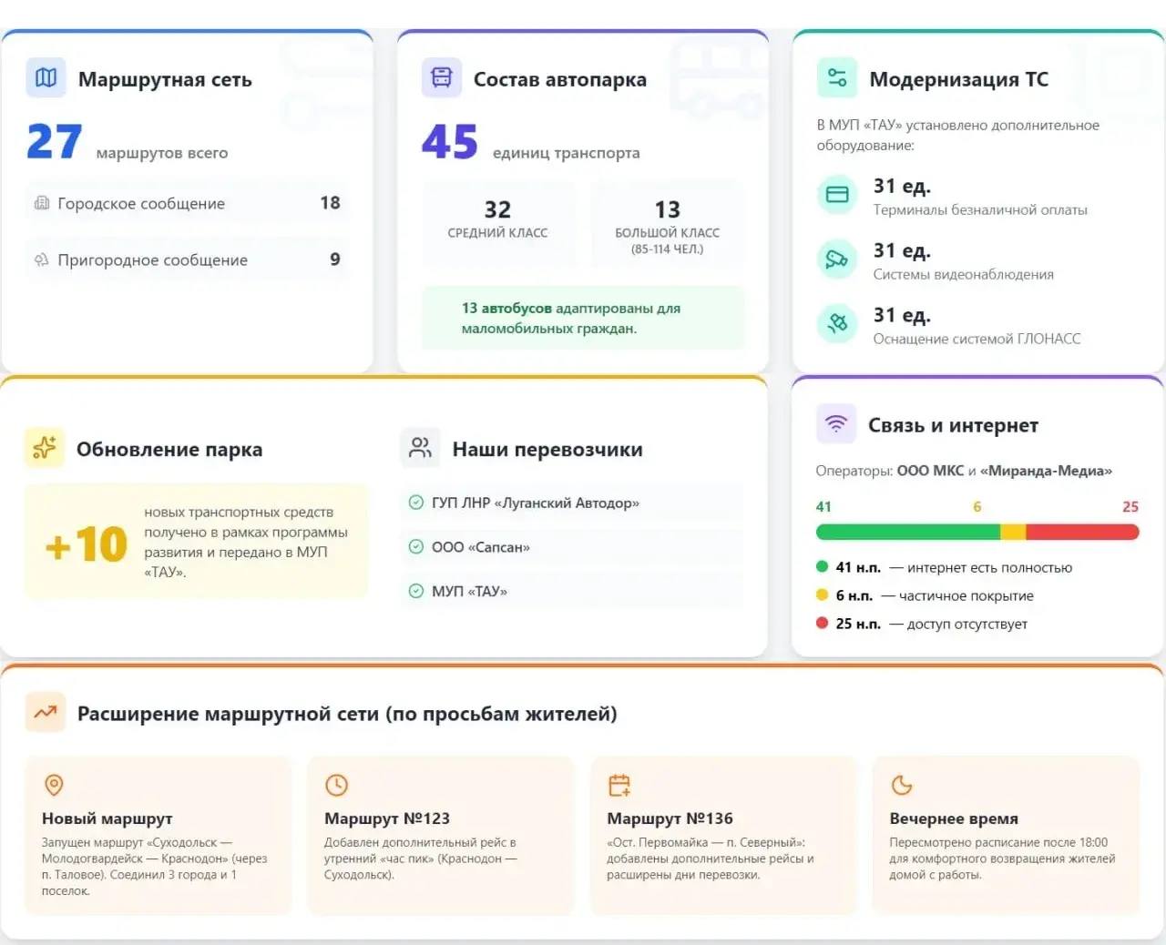 Маршруты по вашим просьбам: открыли новое направление, соединившее Суходольск, Молодогвардейск, Краснодон и п. Таловое. Добавили утренние рейсы и пересмотрели вечернее расписание после 18:00, чтобы добираться домой стало комфортнее.