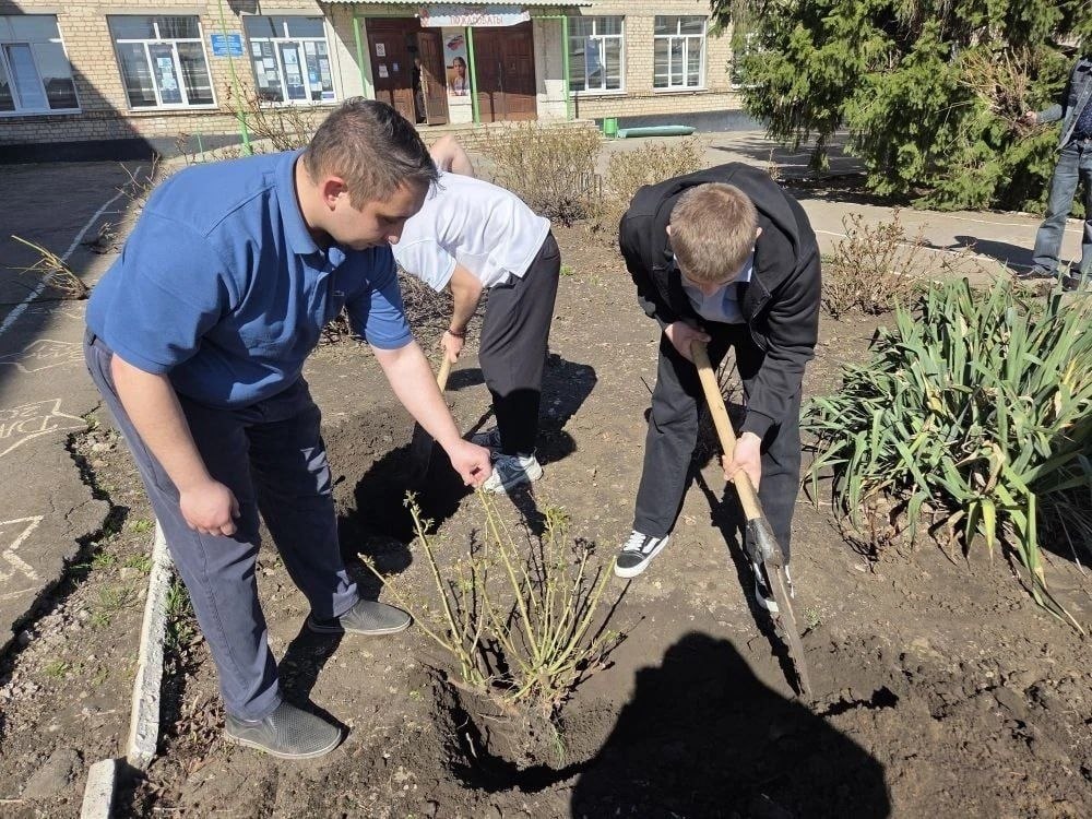 Сегодня в Первомайской средней школе №30 имени Евгения Олейникова прошла всероссийская акция «Сад памяти». К важному делу присоединились педагоги и ученики 11 класса, которые вместе высадили саженцы сирени и роз в память о защитниках, отдавших жизни в годы Великой Отечественной войны 1941–1945 годов.