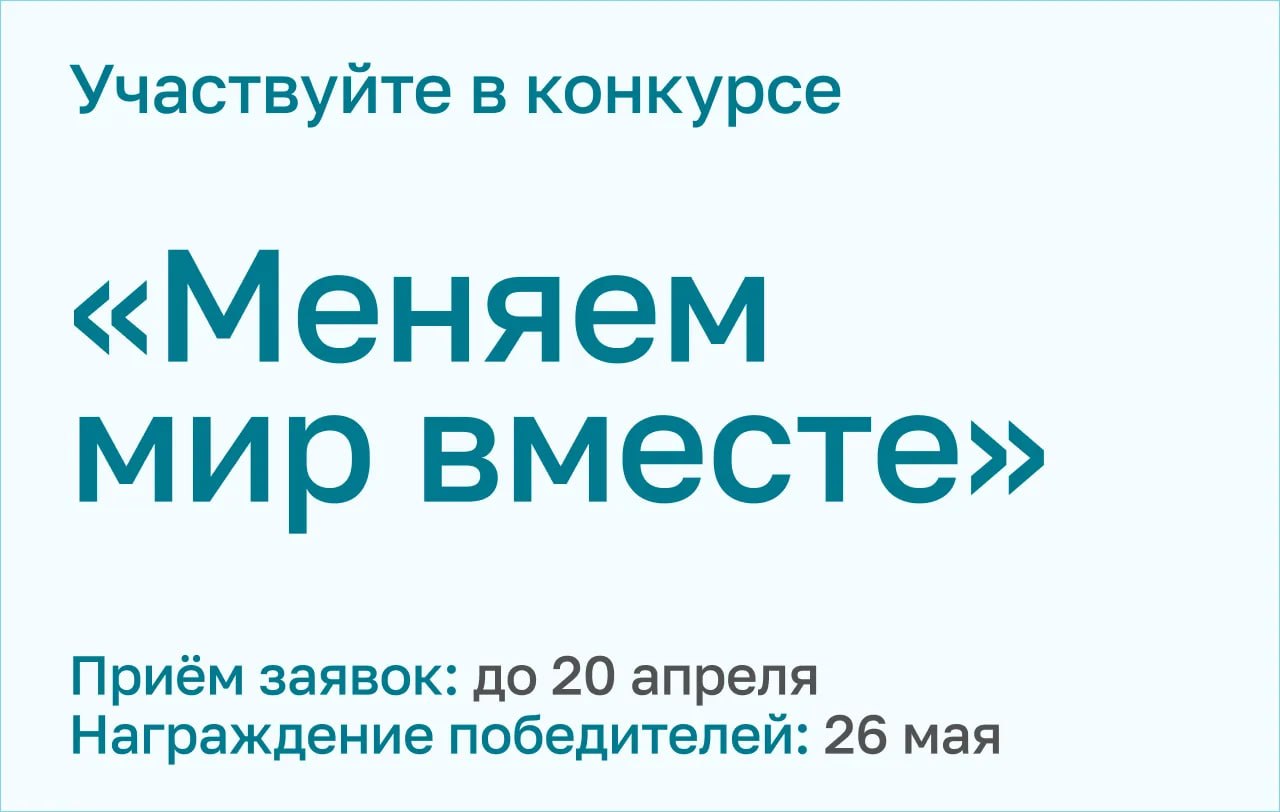 Участвуйте во Всероссийском конкурсе лучших практик социально ориентированных НКО «Меняем мир вместе»: до окончания приёма заявок остаётся две недели.