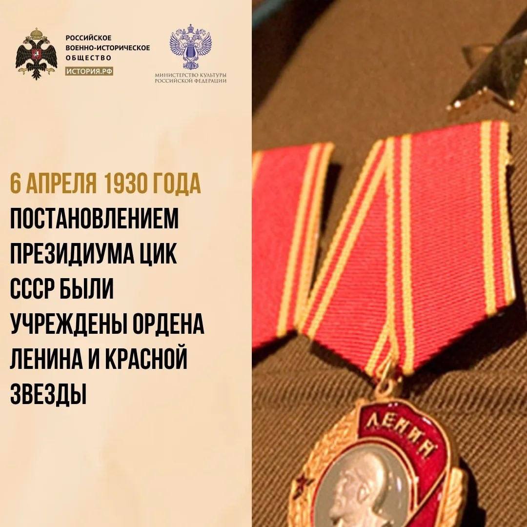 6 апреля 1930 года в Советском Союзе появились ордена Ленина и Красной Звезды. Их учредили постановлением президиума Центрального исполнительного комитета СССР, а через месяц были утверждены и статуты новых наград.