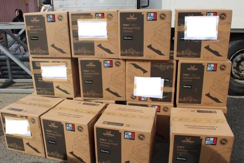 Речь идёт о 53 многофункциональных устройствах «Катюша» и комплектующих для них, которые органы власти отправили 2 апреля в образовательные учреждения подшефного города Свердловска. Ожидается, что оргтехника прибудет в место назначения к середине апреля.