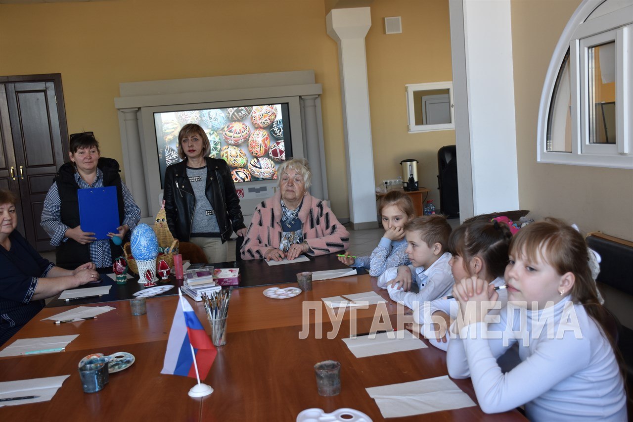 Культорганизатор Елена Макаренко рассказала ребятам о предстоящем празднике Светлого Христова Воскресения и о традициях росписи пасхальных яиц.