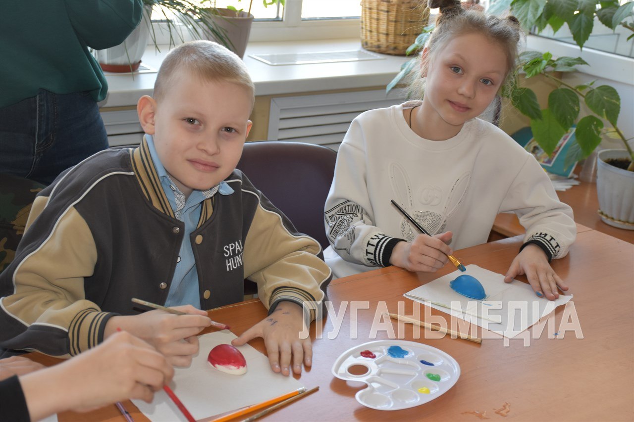 Мальчишки и девчонки разгадывали загадки, приняли участие в викторине и игре-кричалке, а также раскрасили акриловыми красками яйца.