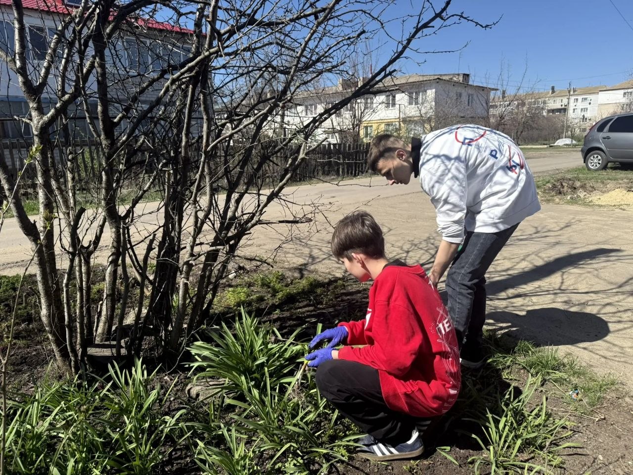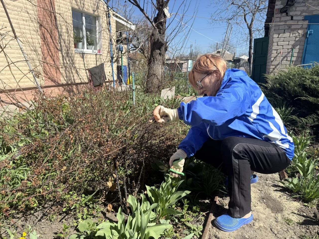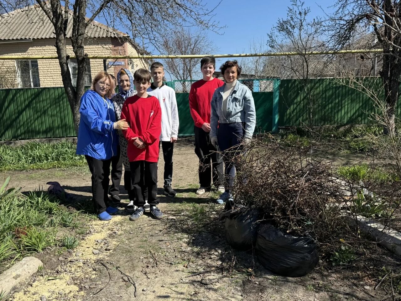 Ребята работали споро и слаженно. Участники трудового десанта обрезали кусты роз, которые когда-то с такой любовью сажала сама хозяйка, убрали накопившийся за зиму мусор, привели в порядок придомовую территорию.