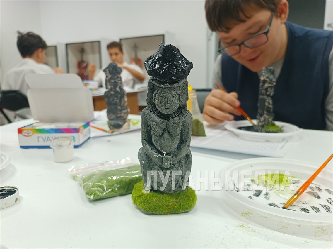 Самым ярким моментом встречи стала практическая часть. Школьникам предложили буквально прикоснуться к древности, раскрасив миниатюрные копии половецких каменных изваяний. Пока ребята подбирали природные цвета и декорировали свои работы, младший научный сотрудник музея и педагог-историк Татьяна Стець раскрывала секреты мастерства кочевников.